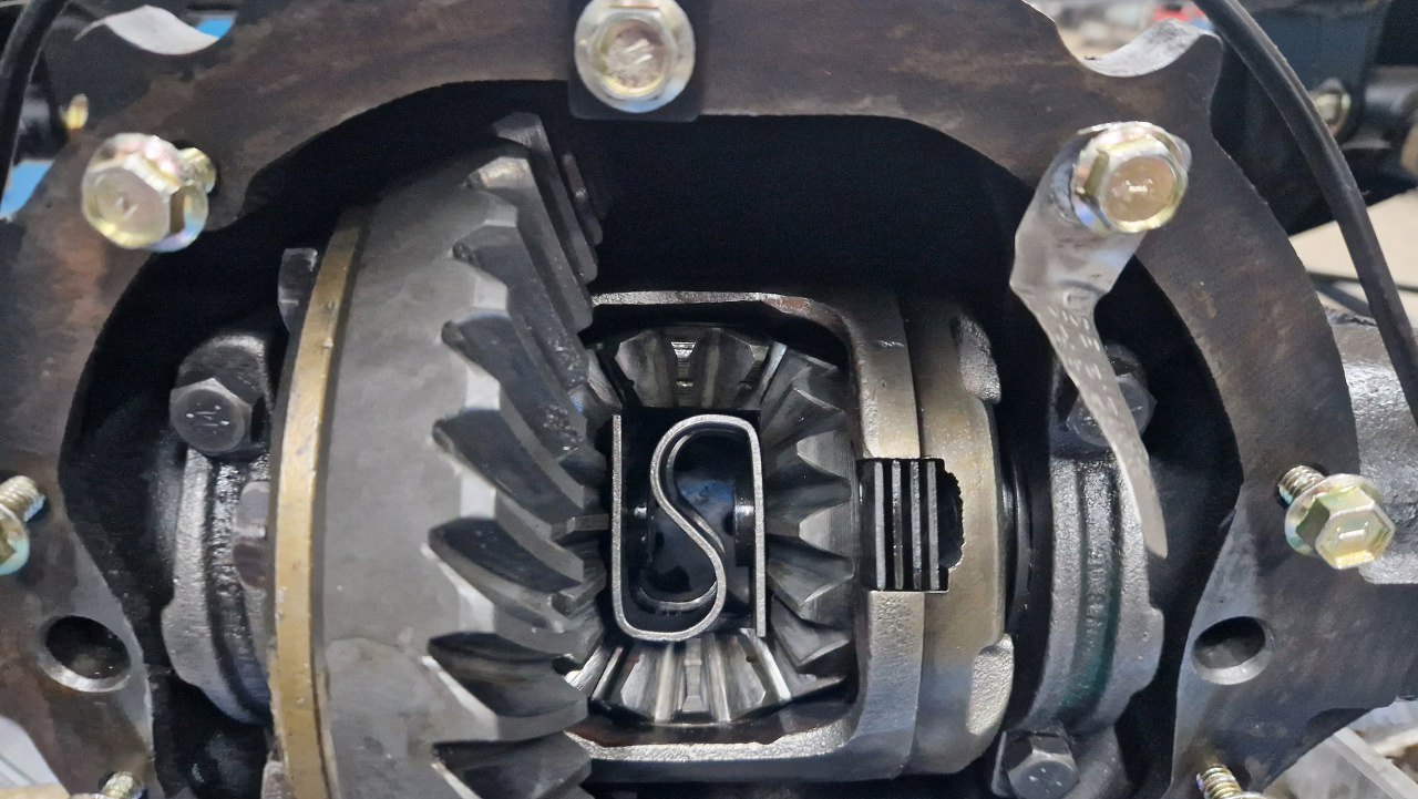 Pomiędzy kółkami zębatymi a sprężyną "S" wsunąłem w wycięcia w półosiach klipsy je tam trzymające. Oczywiście nic z tego nie widać, bo jest tam za ciasno, żeby zrobić zdjęcie :).