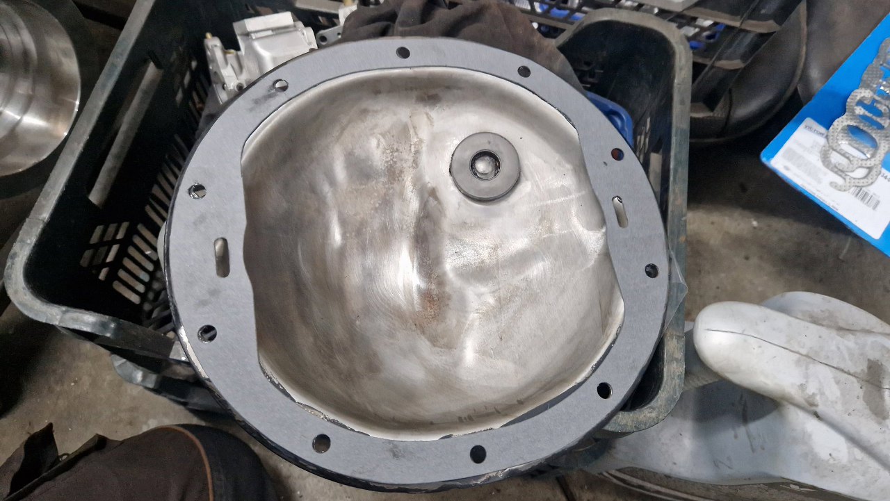 Pokrywa mostu była z zewnątrz piaskowana i malowana proszkowo. Zdjąłem zabezpieczenia przed piaskiem i domyłem wnętrze pokrywy. Mam tu też nową uszczelkę.