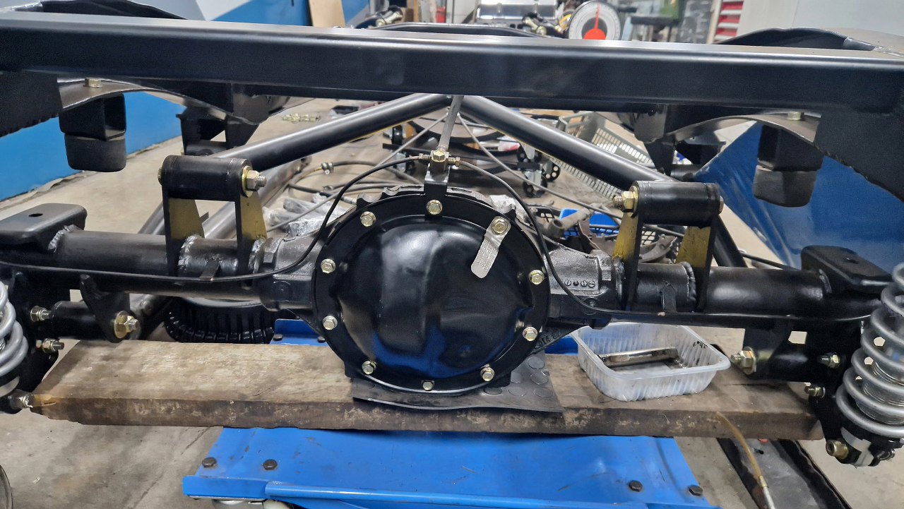 Potem przykręciłem tarcze kotwiczne do obudowy mostu. Z tyłu wkręciłem rurki hamulcowe do cylinderków.