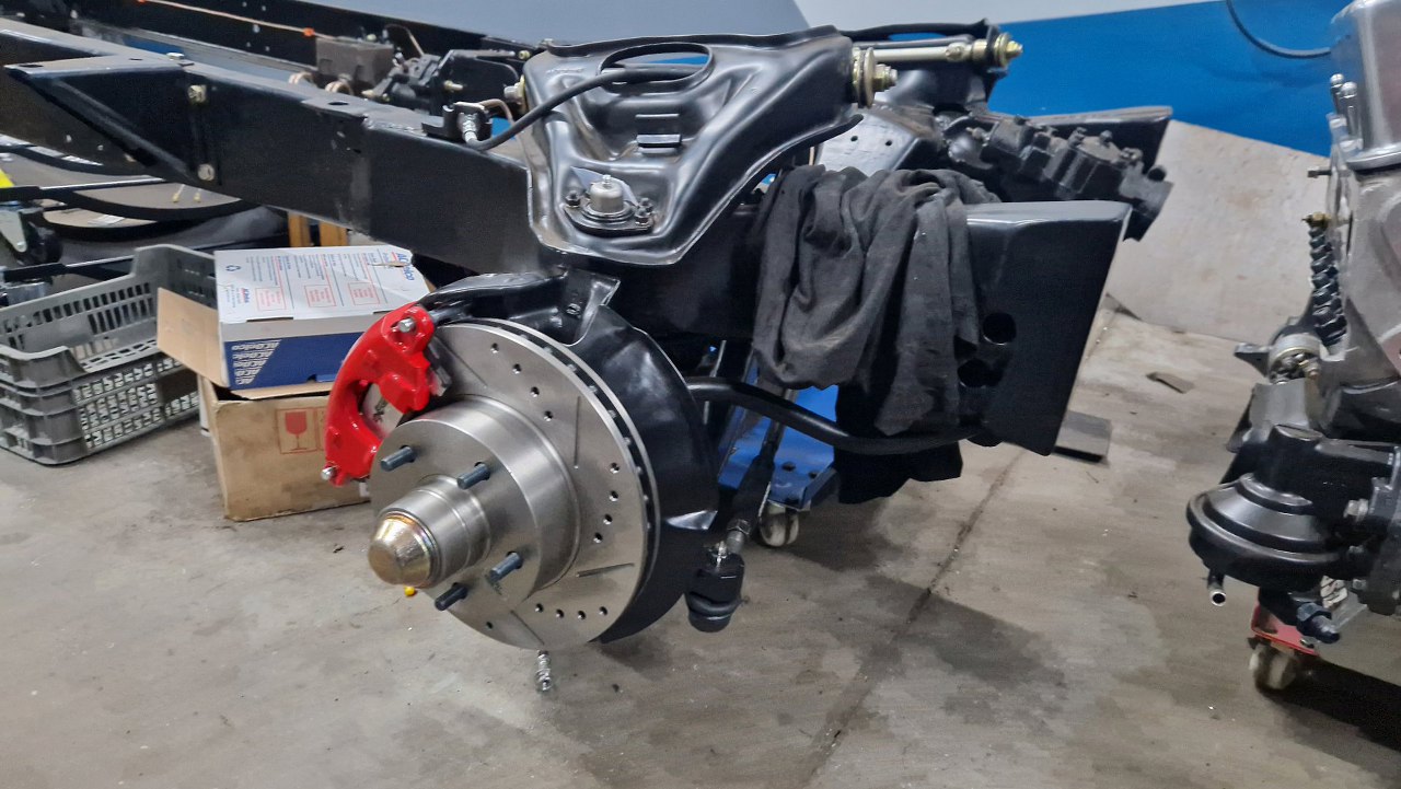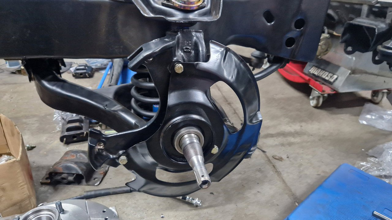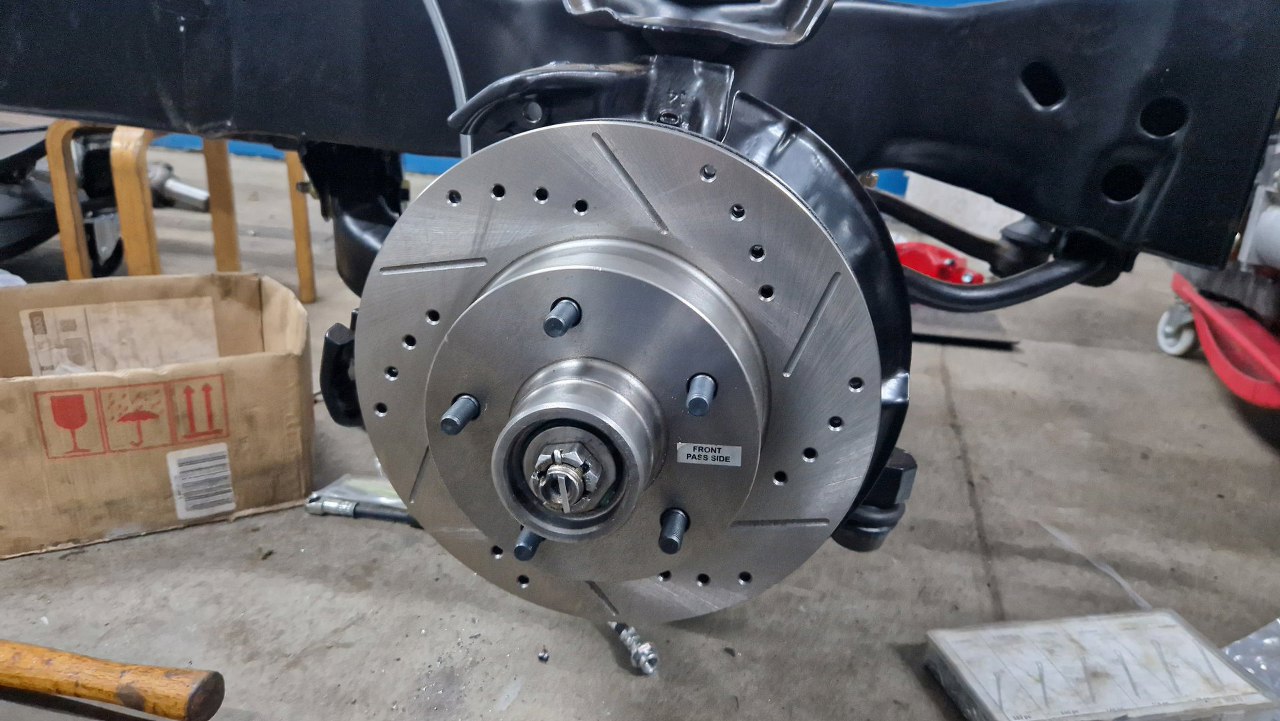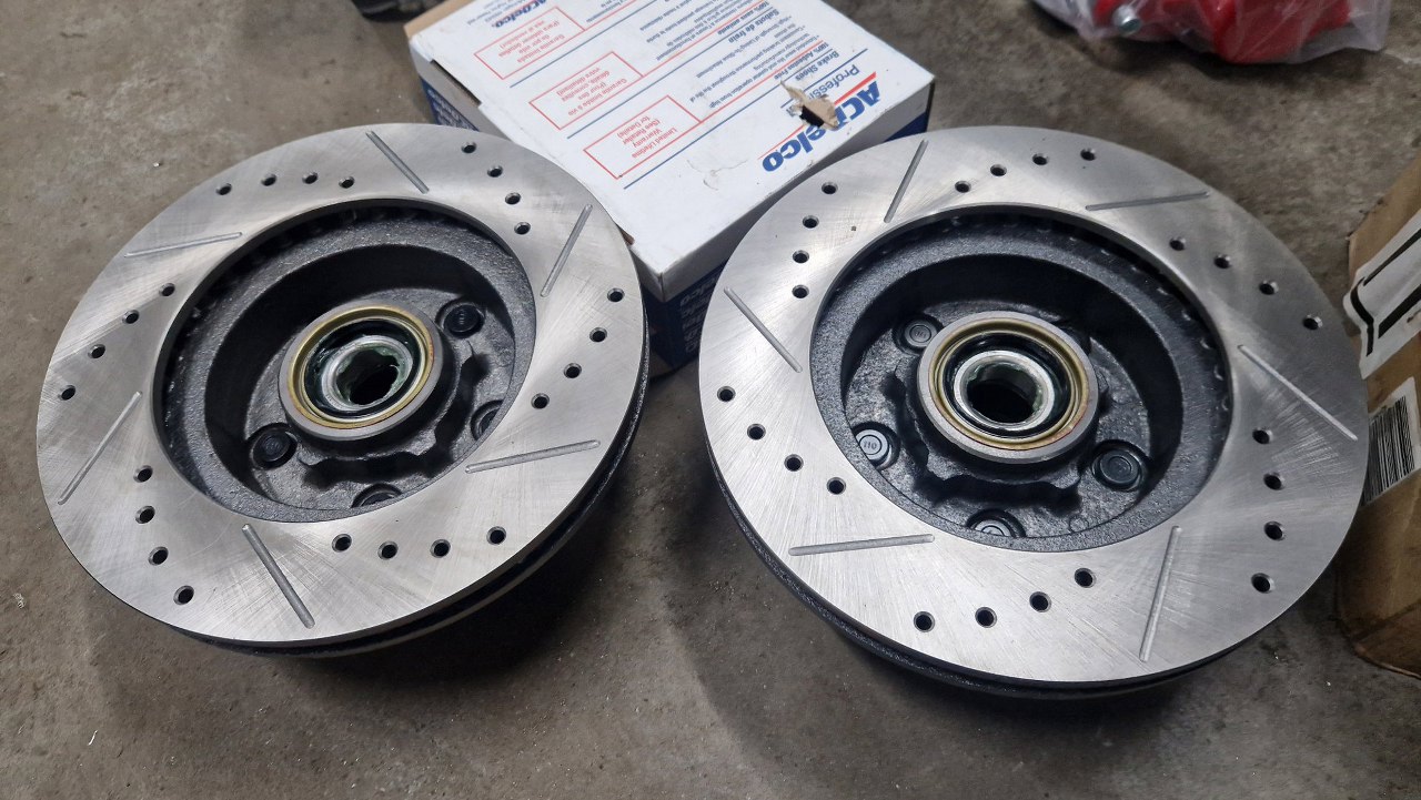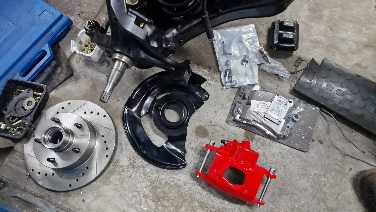 Przejdźmy na przod. Do przykręcenia zostały osłony tarcz hamulcowych. Tarcze i zaciski zostały kupione nowe - nacinane i nawiercane, bo czemu nie?