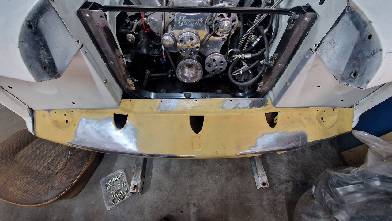 Dospawany kątownik to wstęp do mocowania na chłodnicę, otwory to stare mocowanie chłodnicy. Nic z tego nie wykorzystam.
