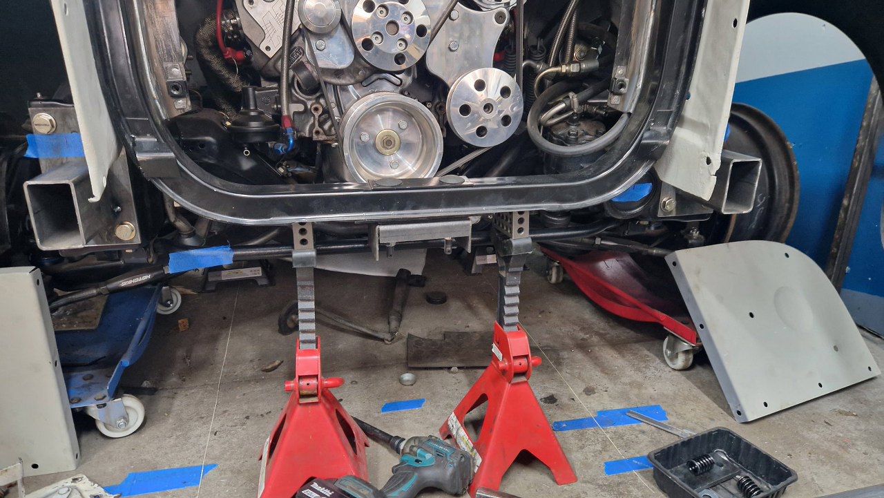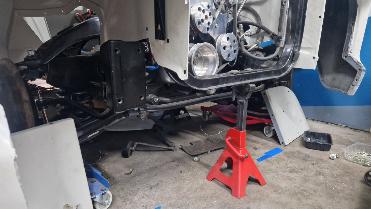 Przykręciłem to może nie po raz ostatni, ale jest to pierwszy raz, kiedy przód auta opiera się na ramie, a nie na podstawkach. To naprawdę spore osiągnięcie.