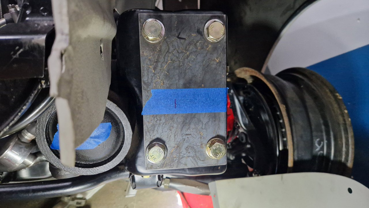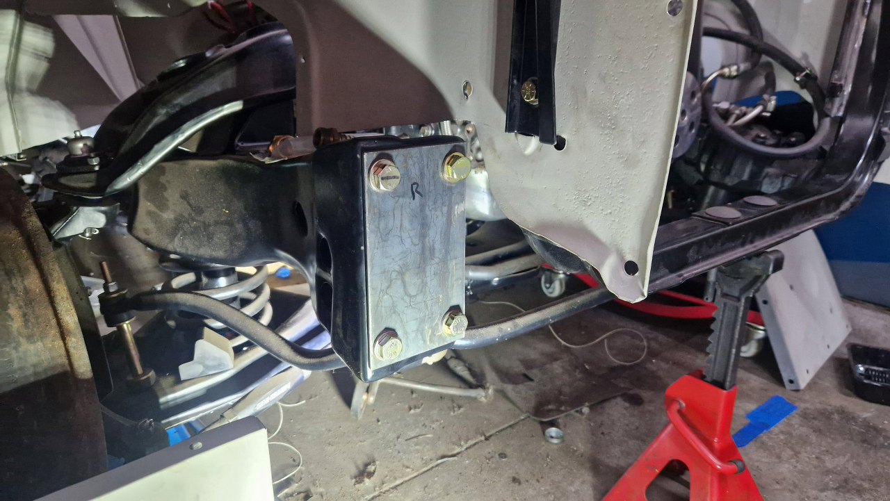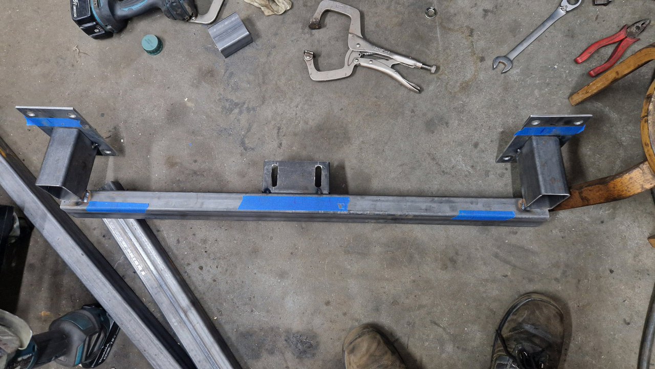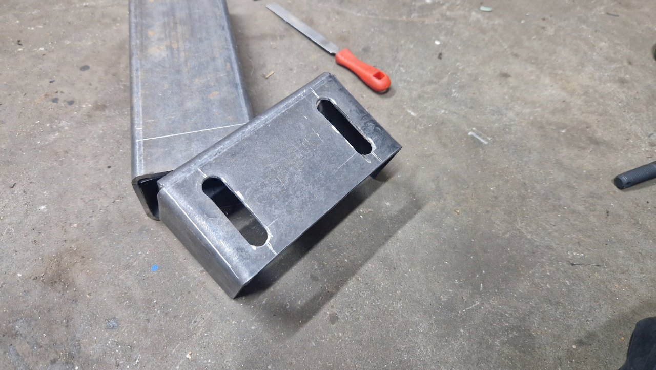 Poprzeczkę do boków złapałem na razie tylko wzdłuż osi auta. Wyciąłem wzmocnienie podłużnicy do prostokąta mocującego.