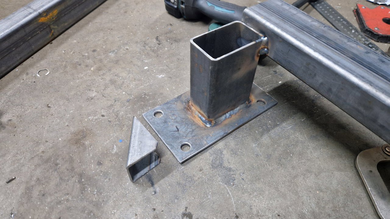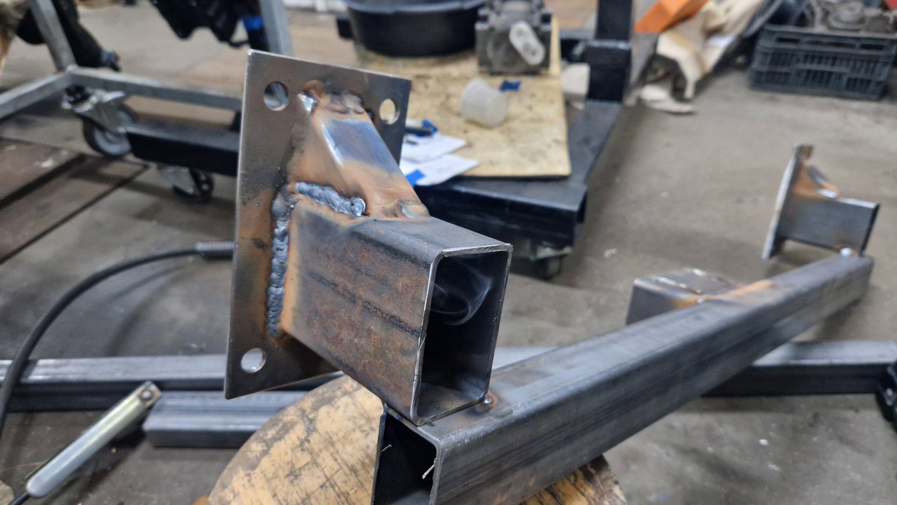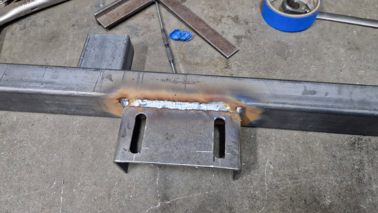Oczywiście nie w przypadkowym miejscu. Po przyłożeniu poprzeczki widać jak to ma być połączone. Na tym etapie spawam to tylko punktowo.