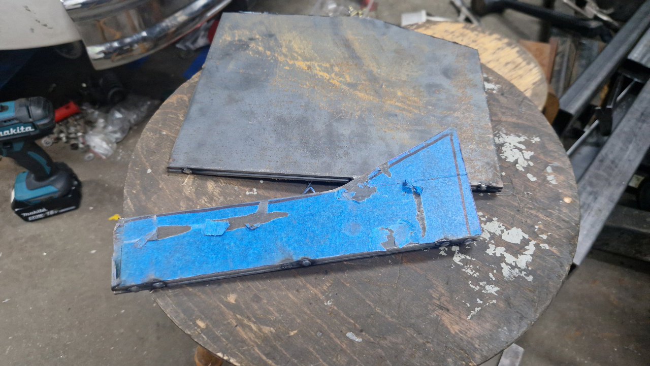 Po wycięciu dwóch identycznych blach przyspawałem je do reszty.