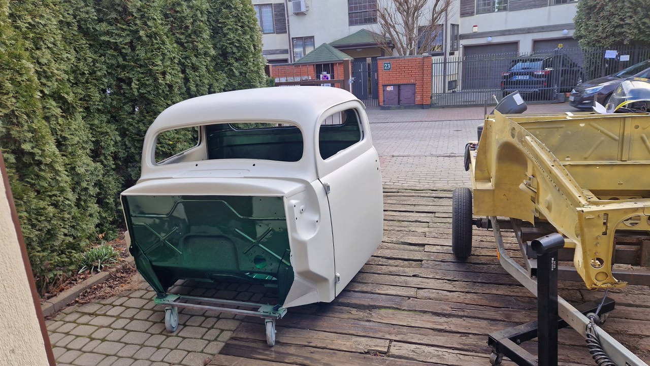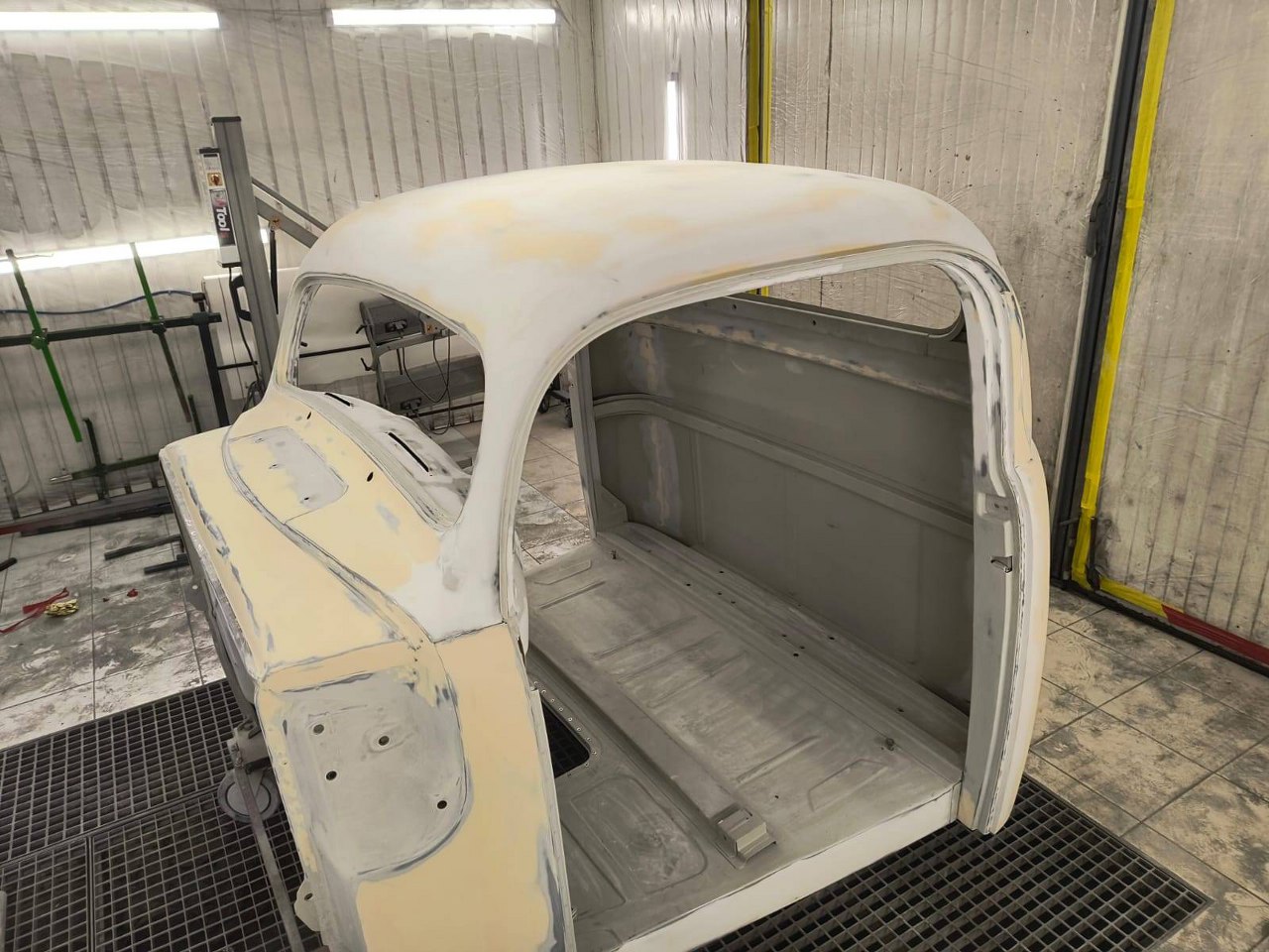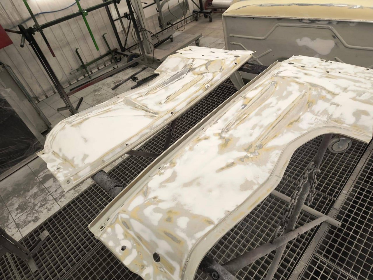 Dostałem kilka zdjęć z wyprowadzania kabiny pod lakier i lakierowania. Szpachla wygląda groźnie, ale większość z tego jest zeszlifowana.