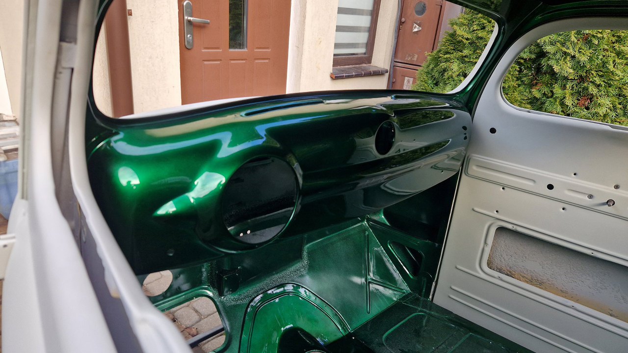 Następnie pomalowane na gotowo zostały: podłoga od dołu, wnętrze, deska rozdzielcza i kawałek tyłu kabiny, gdzie może być ciężko dojść z lakierowaniem po zamontowaniu tego na ramie.