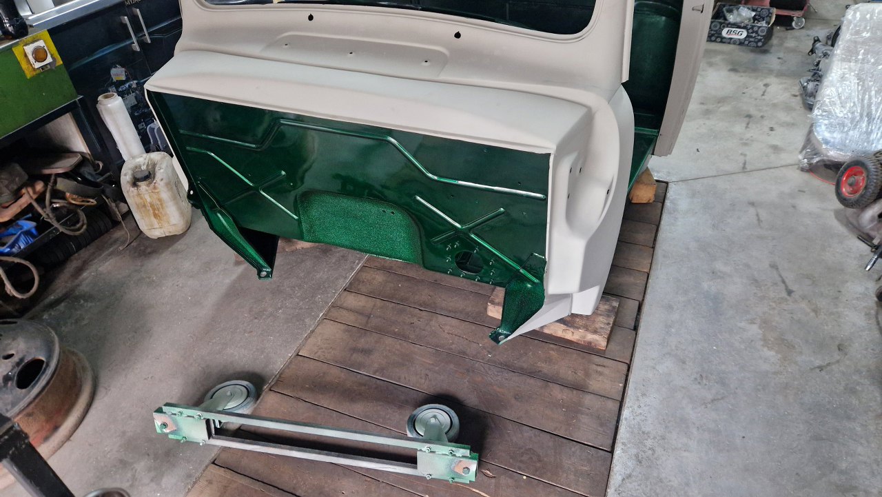 A tu widok na pomalowaną ścianę grodziową. Odkręciłem wózek, na którym była lakierowana kabina.