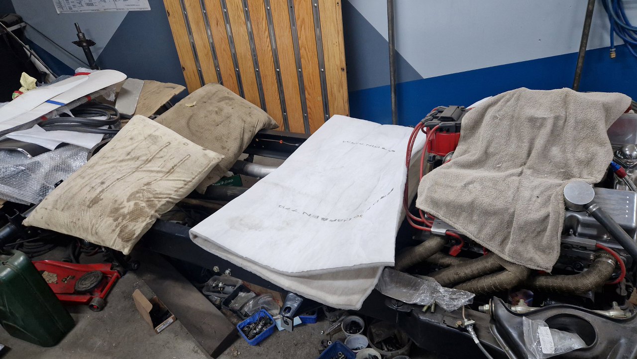 Potem przenieśliśmy kabinę na miejsce na ramie i położyliśmy ją na poduszkach. Wszystkie części do jej przykręcenia były już gotowe, więc niedługo potem kabina była zamontowana na swoim miejscu bez poduszek, szmat itp.