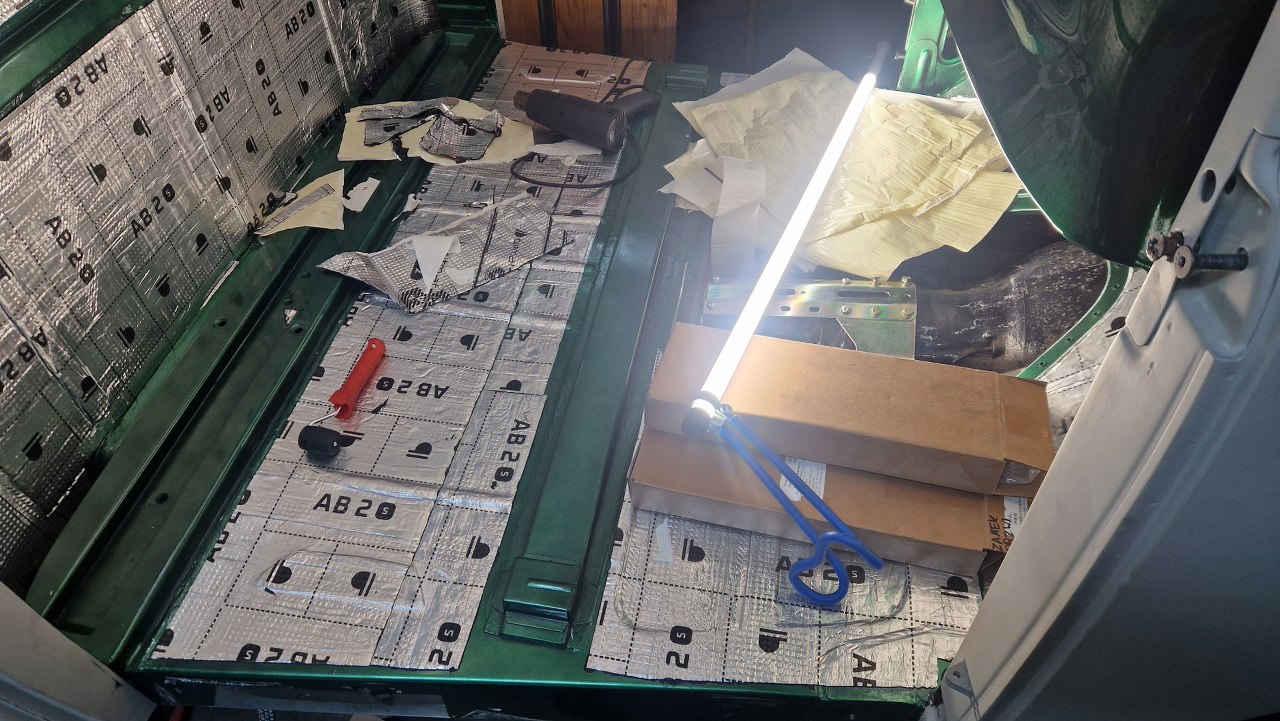 Zanim zacznę montaż czegokolwiek trzeba przykleić pierwszą warstwę wygłuszeń. Tu gródź od środka.