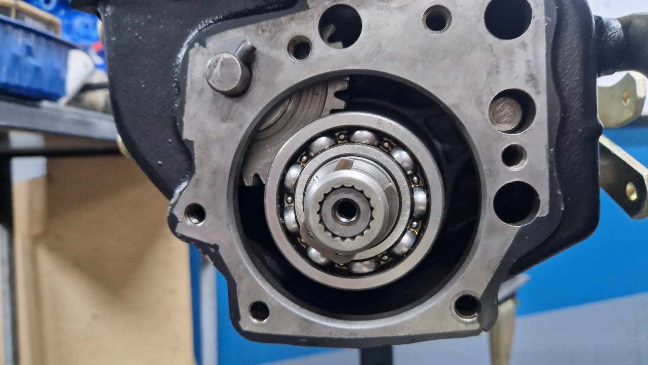 Z przodu tyle wałka wystaje w stronę sprzęgła. Widać też na miejscu nowy uszczelniacz przedni.