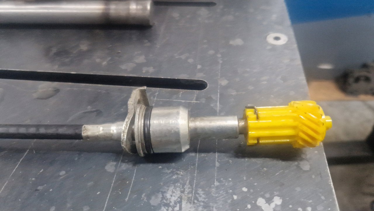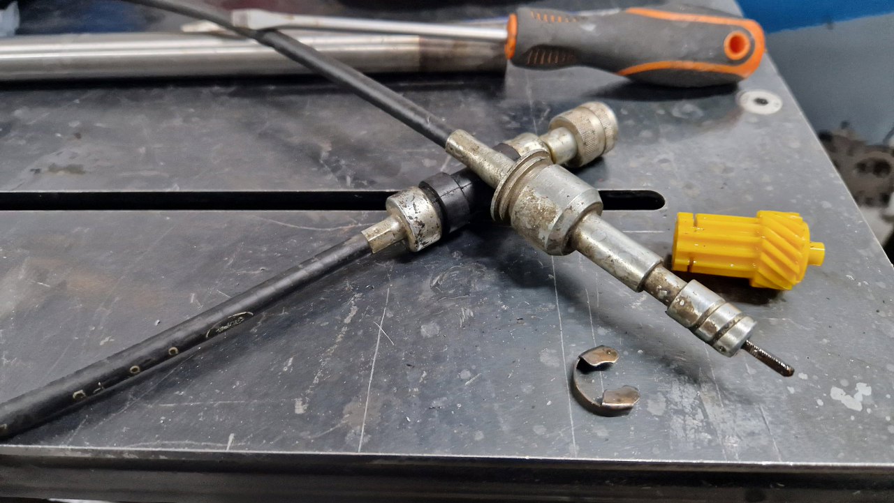 Z innych zakupów mam też nową linkę prędkościomierza - stara miała złamany pancerz i ogólnie była zardzewiała w środku. Ta nowa okazała się leżakiem magazynowym z epoki, jeszcze z logo Forda! Ze starej linki trzeba tylko pozyskać zębatkę.