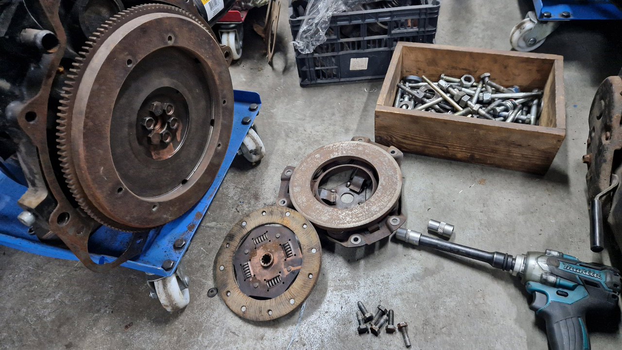 Przede wszystkim muszę to wrzucić na stojak, żeby wygodniej przy tym pracować. Do tego potrzebuję zdjąć sprzęglo i koło zamachowe.