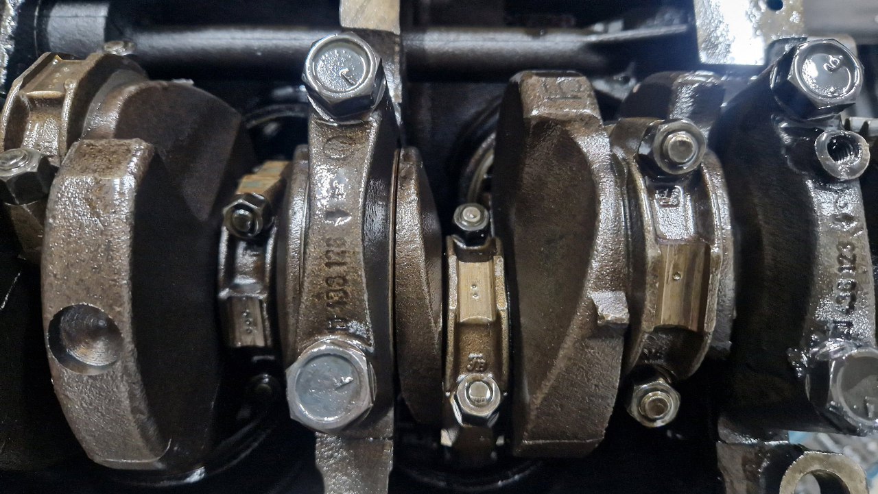 Pomimo, że korbowody mają nabite oznaczenia 1-2-3-4, ktoś tu był i, rozkładając silnik, oznaczył je jeszcze raz nabijając kropki na stopkach korbowodów.