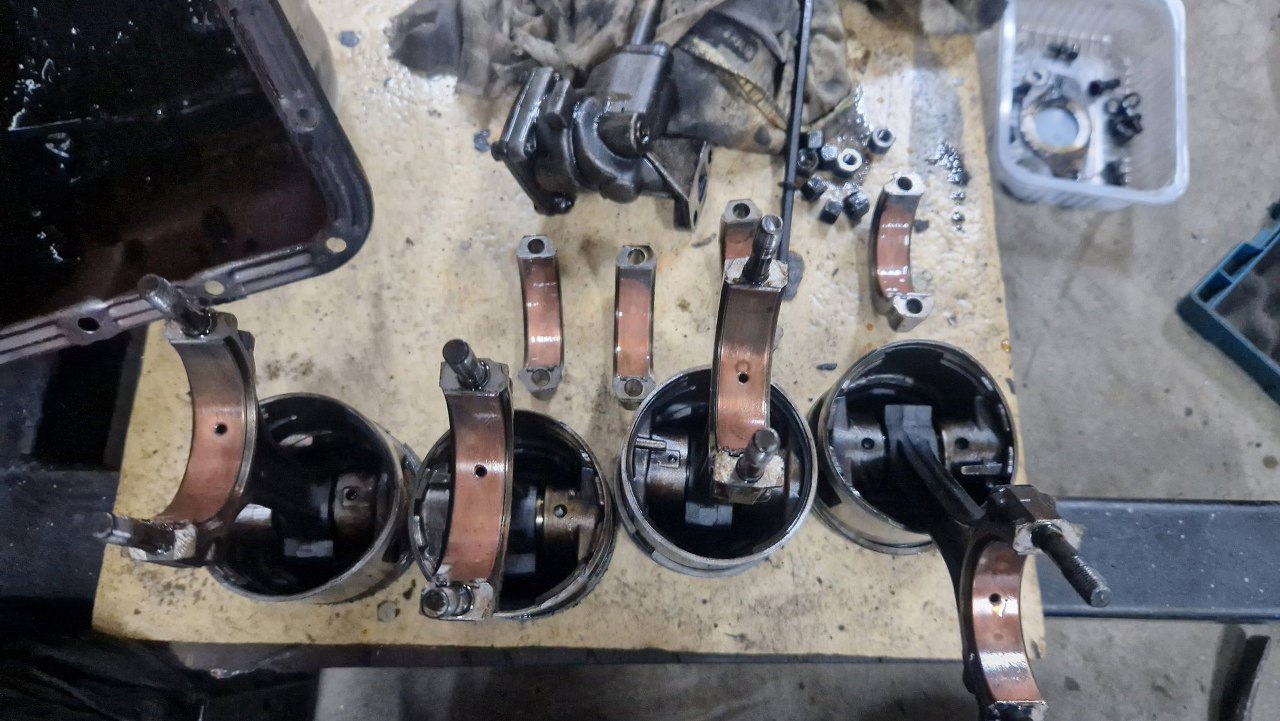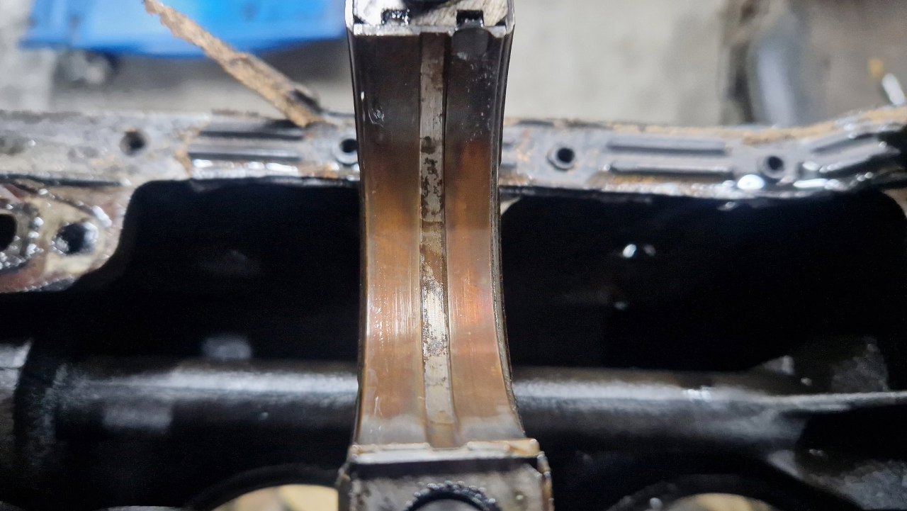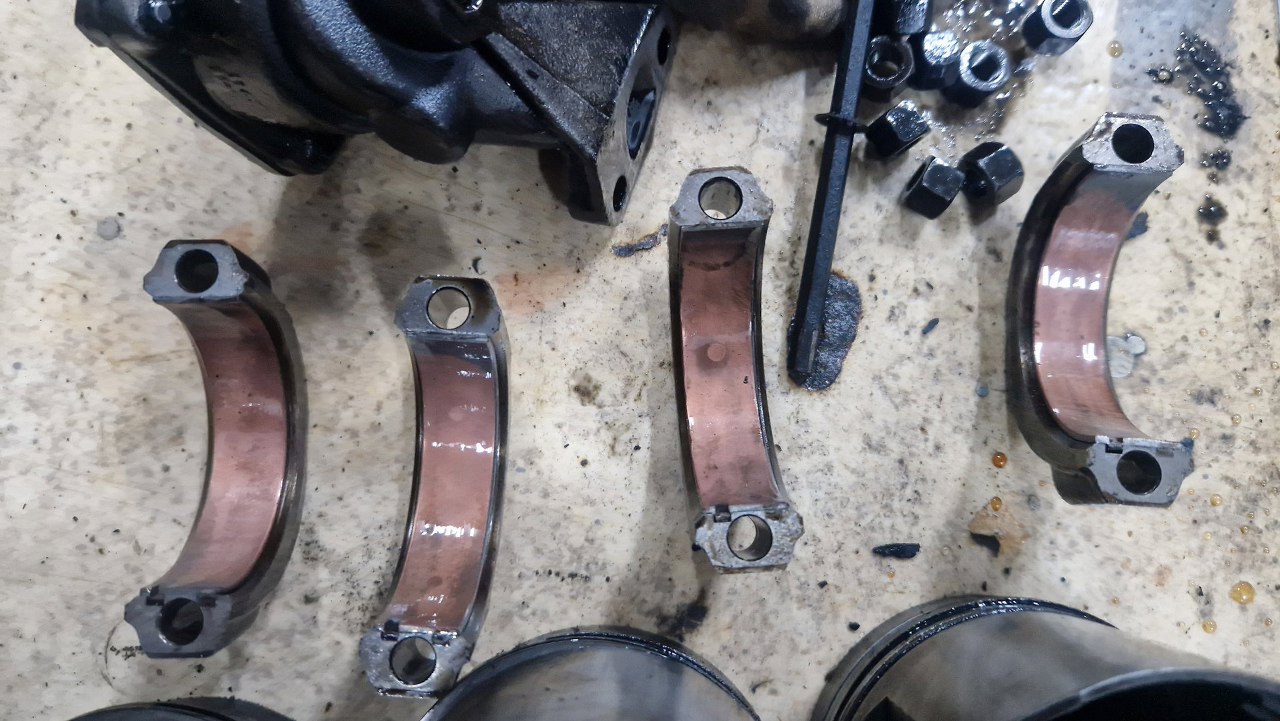 Wszystkie panewki korbowodów mają kolor miedzi. Prawdopodobnie były kiedyś dorobione, bo nie mają żadnych oznaczeń fabrycznych od dołu.