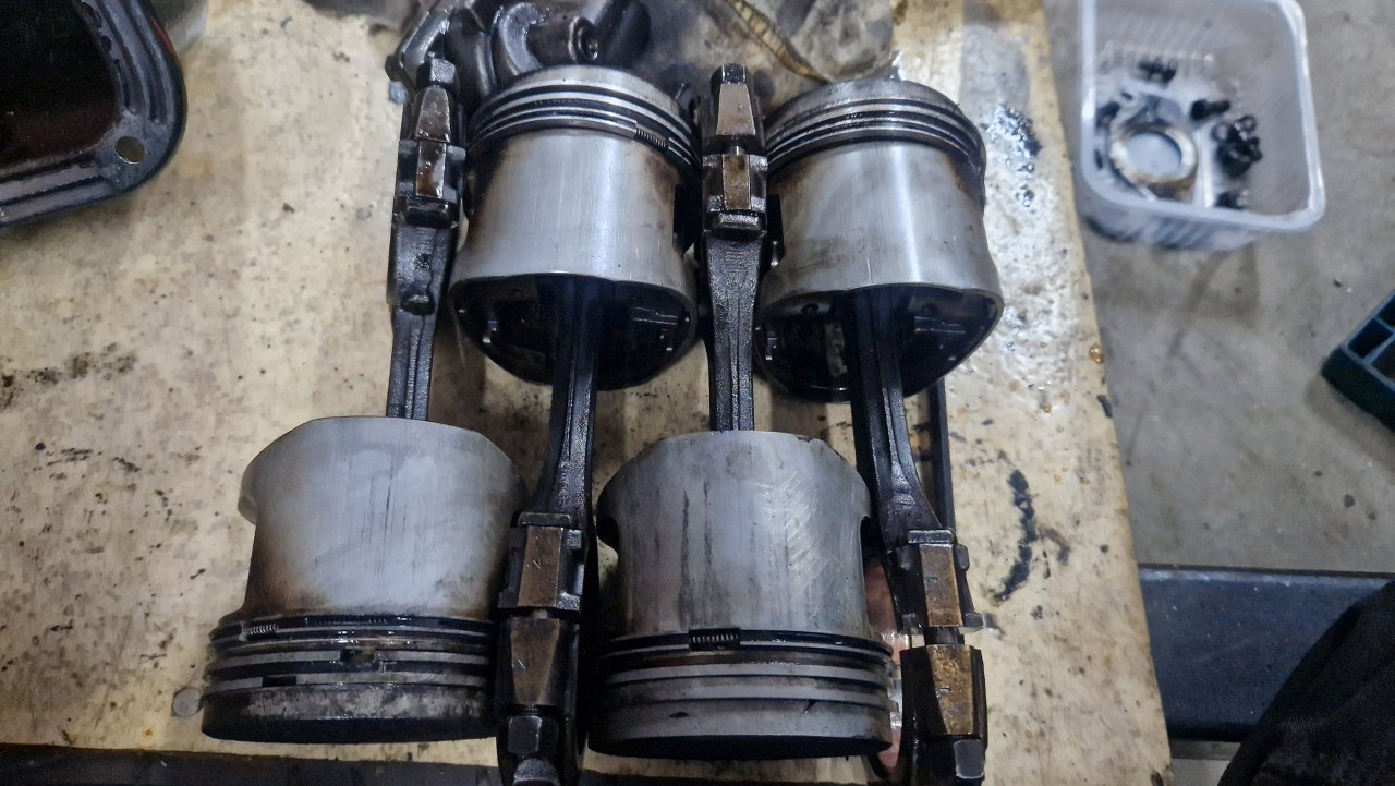 Na tłokach nieco nagaru. Średnica to 84mm, czyli potwierdzamy pojemność 1,2l.