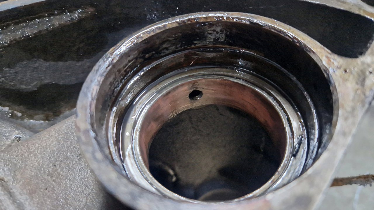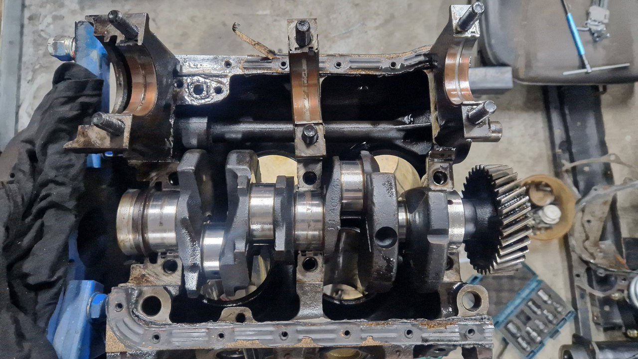 Silnik musiał trochę stać, bo w rowkach panewek głównych widać ślady korozji.