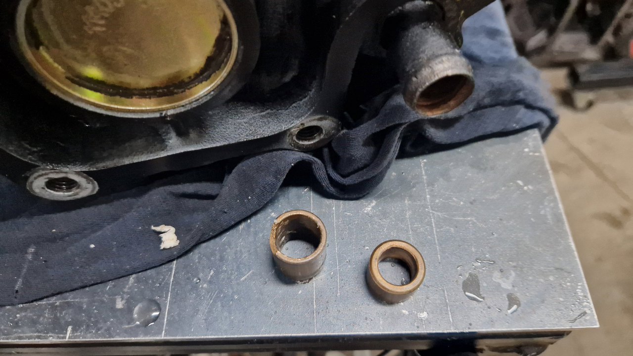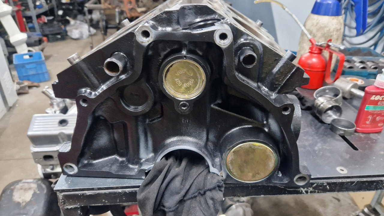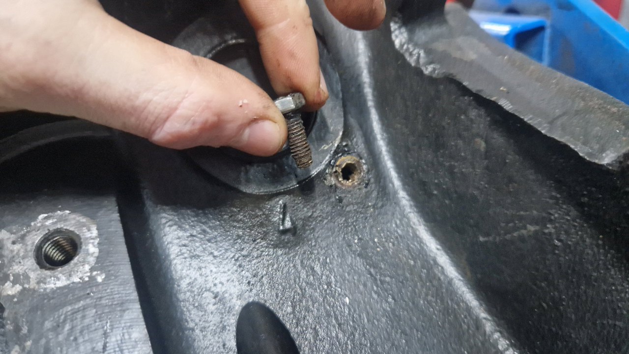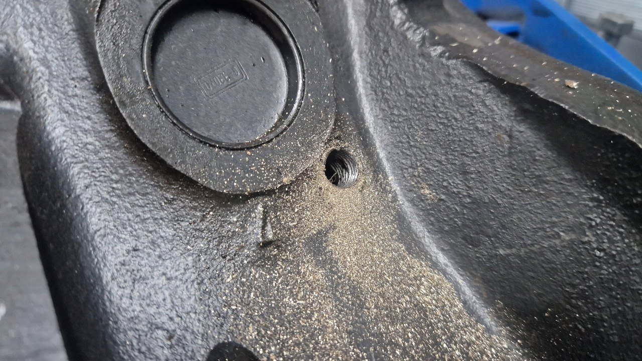 Decyzja podjęta, robimy 1,5. Przygotowuję zatem blok do malowania i składania. Wykręciłem korki spustowe płynu chłodzącego z bloku. Z jednej strony był w porządku, ale z drugiej ktoś wkręcił jakiś korek mosiężny, w nim wywiercił otwór i nagwintował go pod zwykłą śrubę. To muszę poprawić.