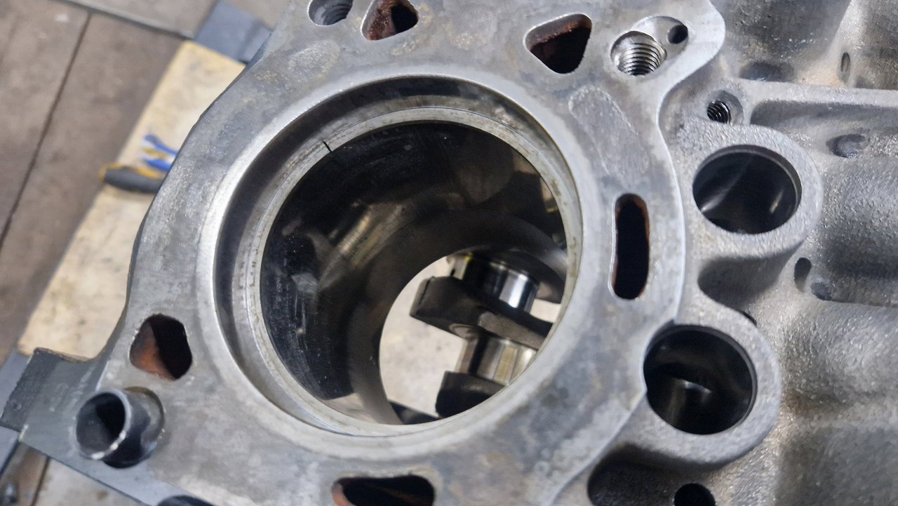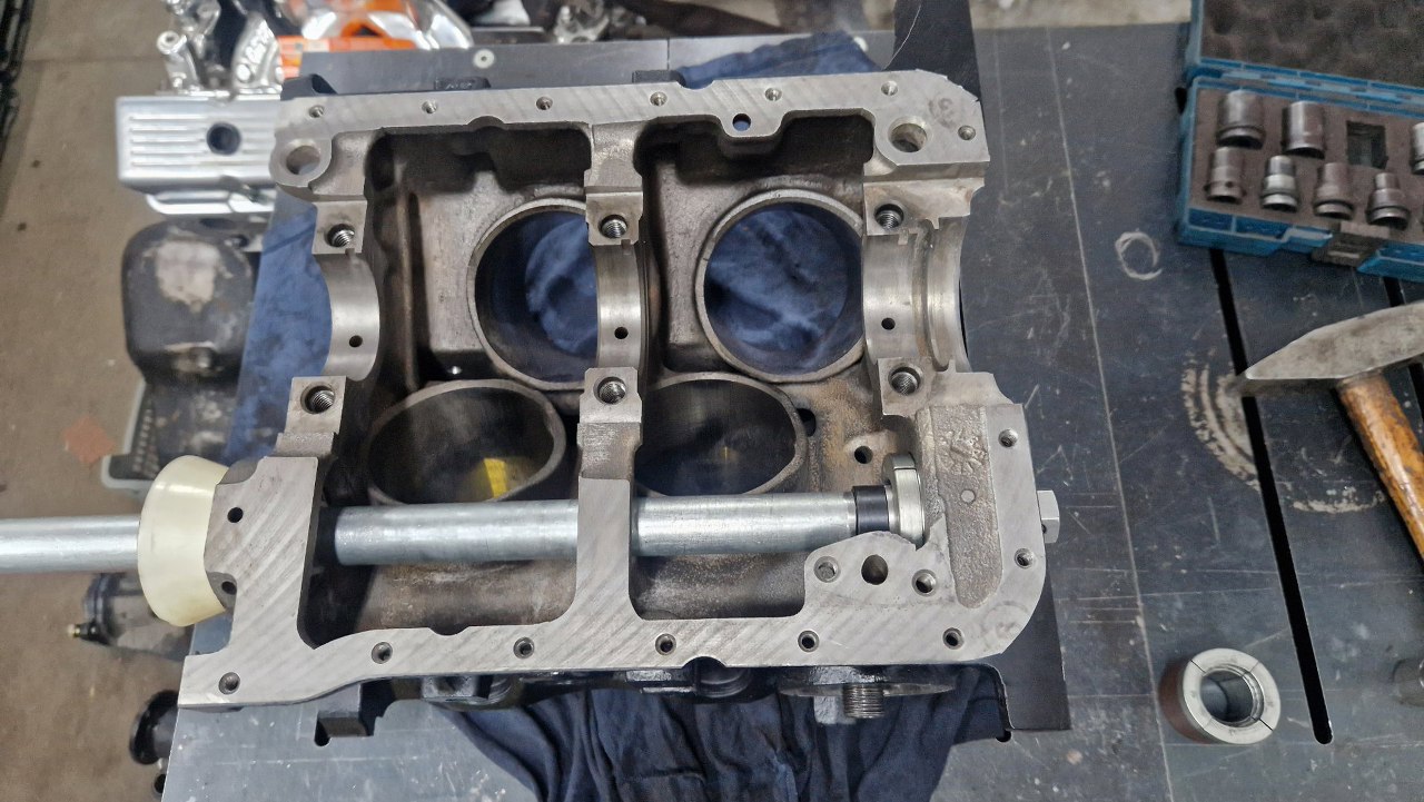 A tu już wbita tylna. Standardowo musiałem ją nieco przetrzeć papierem, bo jest za ciasna. W każdym bloku V4 mam ten problem, podejrzewam błąd w produkcji panewek. Niestety nikt nie chce przekazać moich uwag do producenta :).