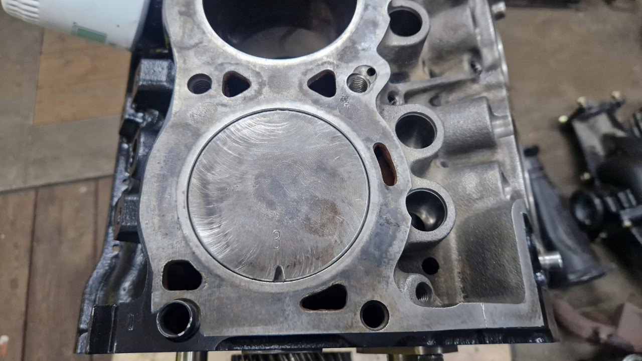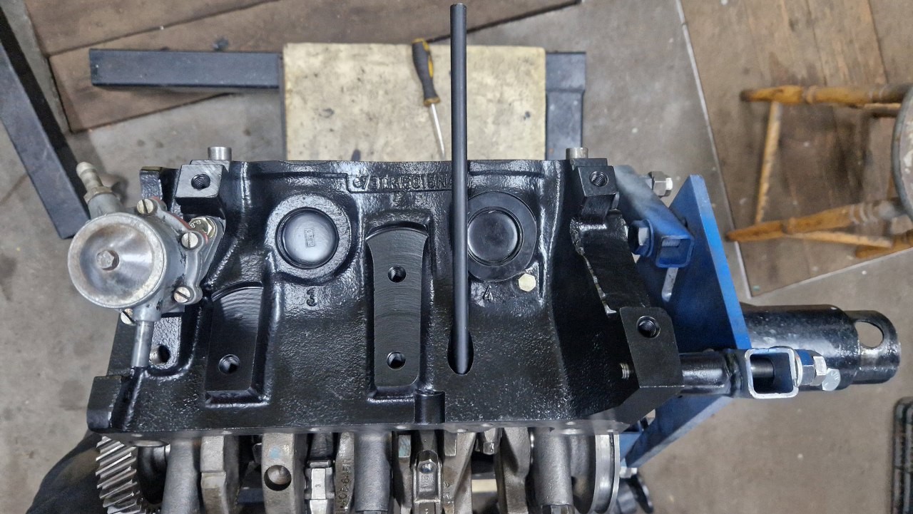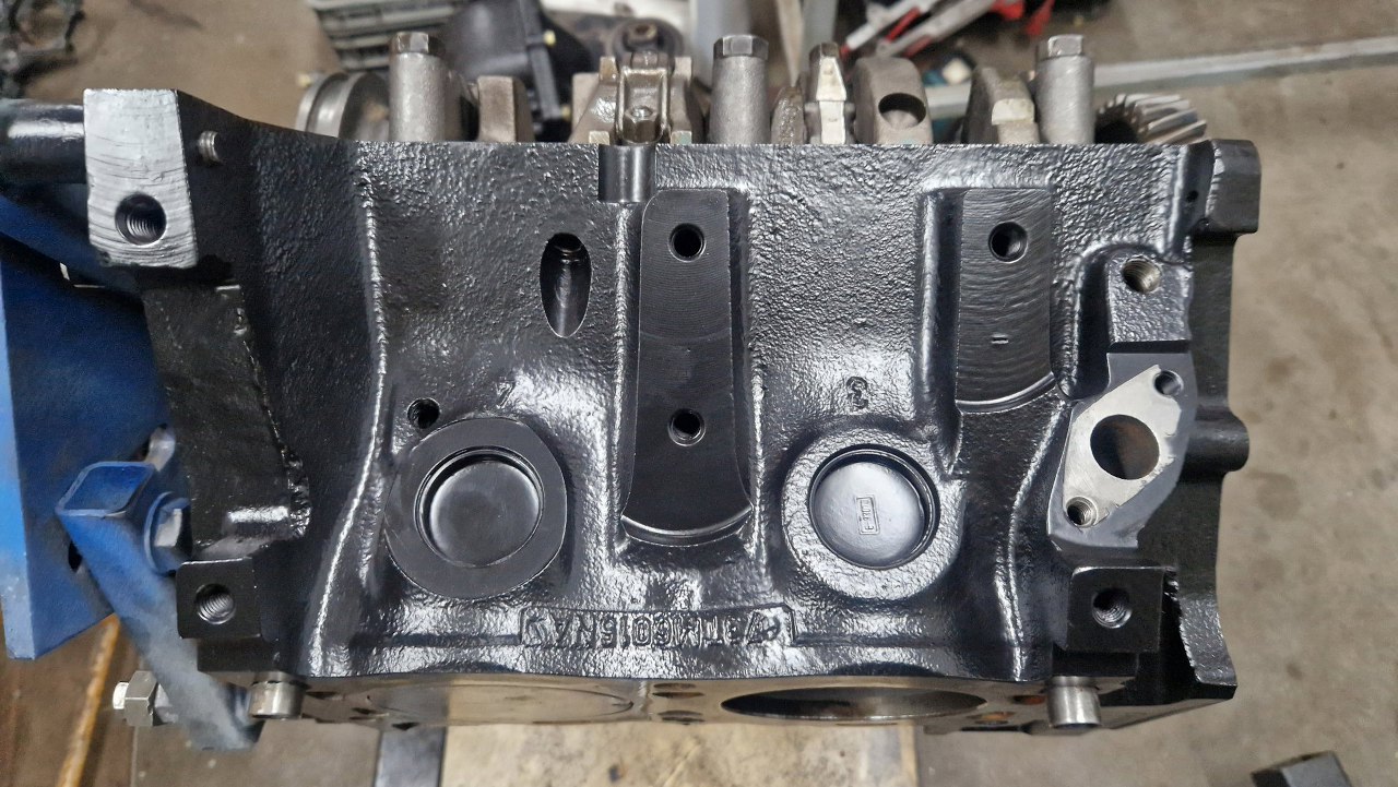 Pierwszy tłok trafił na swoje miejsce w bloku.