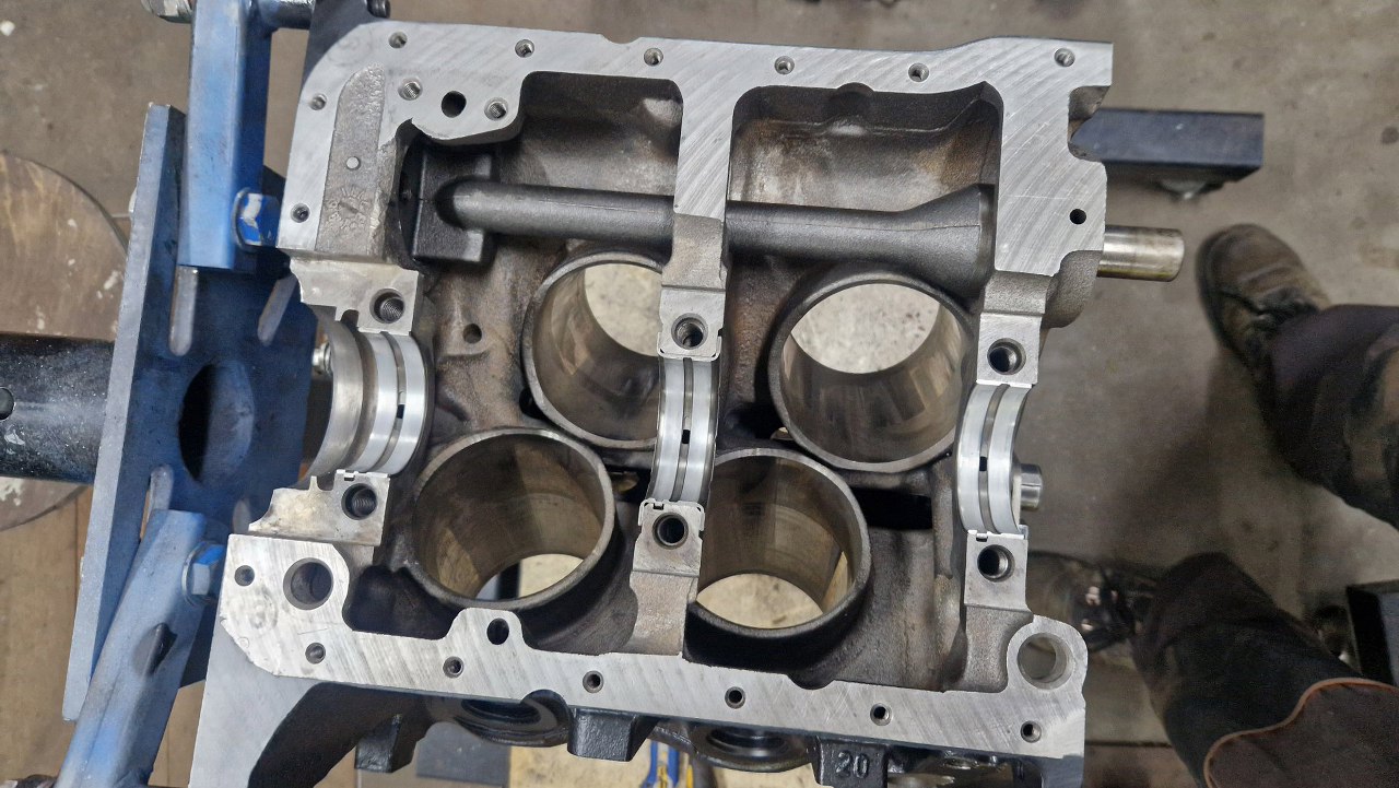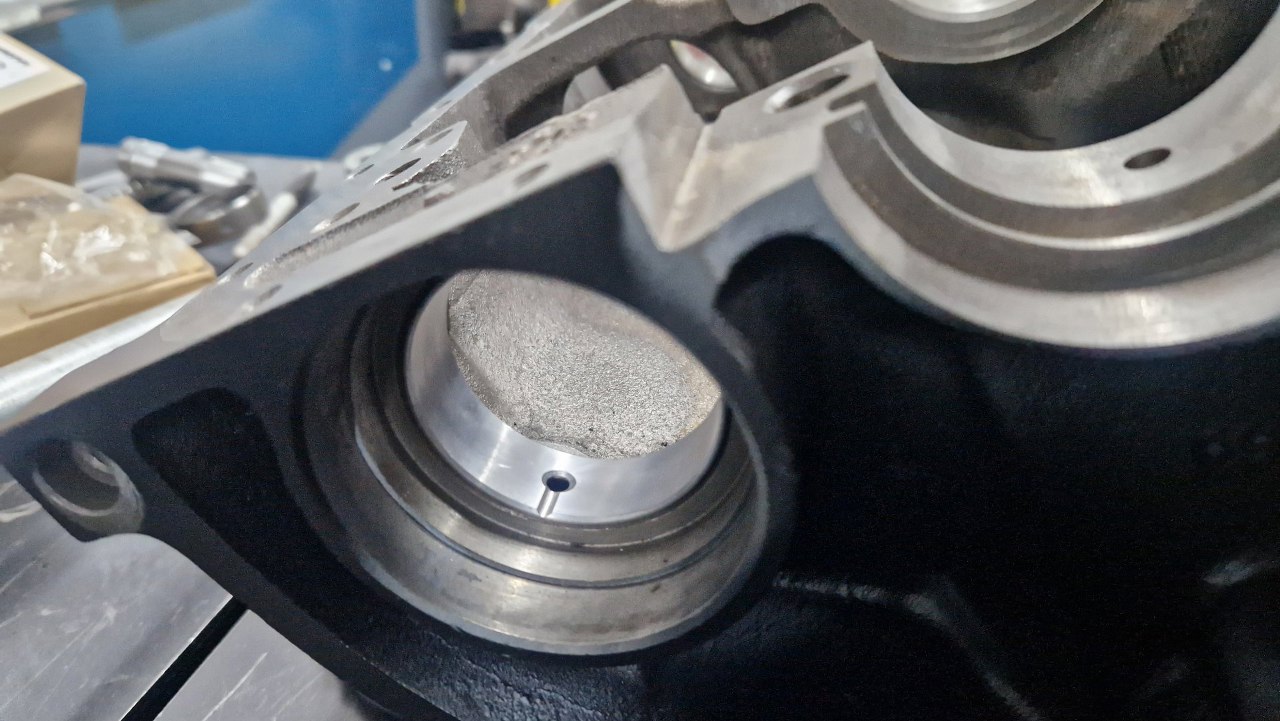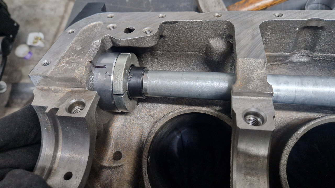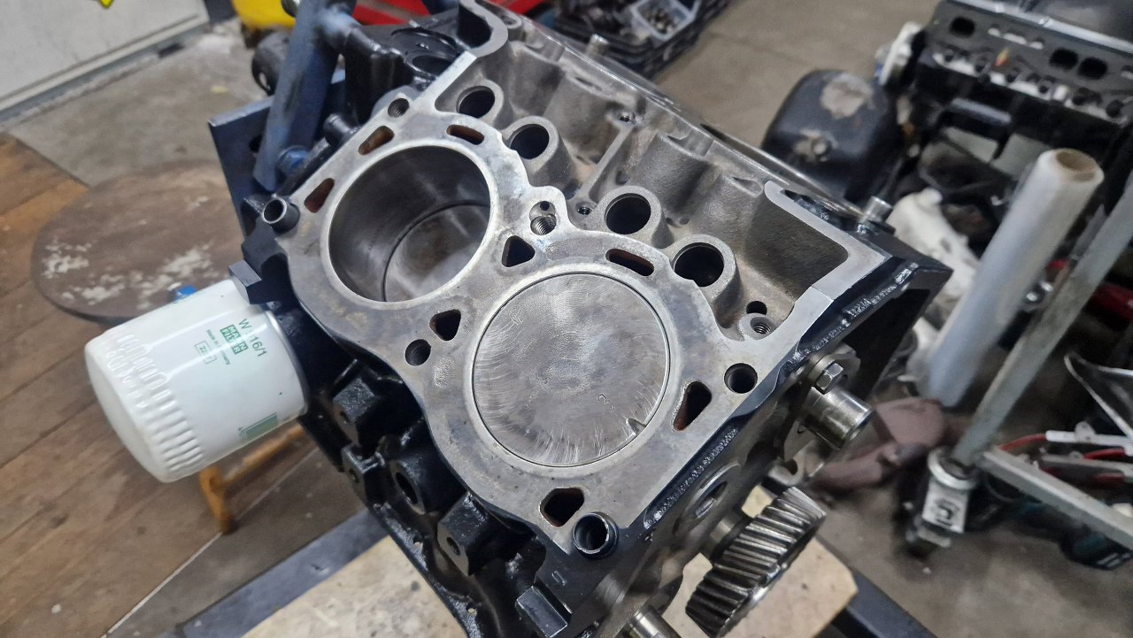 Pierwszy tłok trafił na swoje miejsce w bloku.