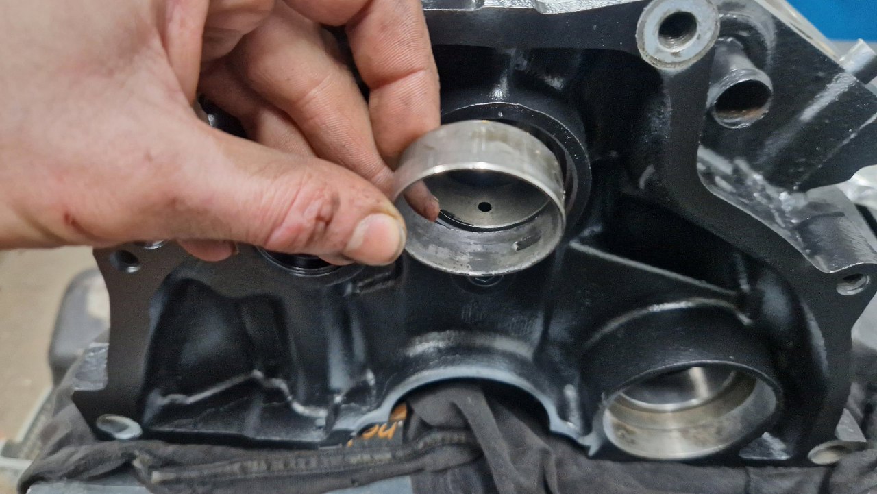 Po wymianie panewek wałków mogę zaczynać składanie. Zaczynam od wałka rozrządu.