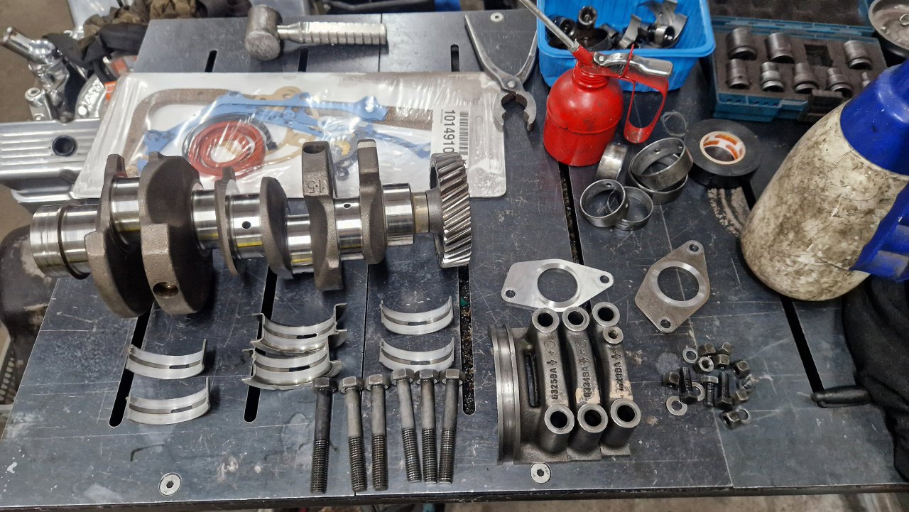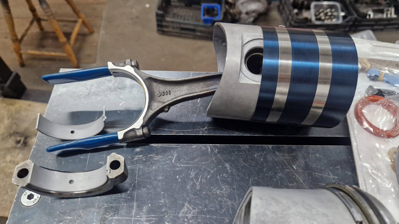 Potem na stół trafiła kolejna partia części - tłoki. Kupiłem do nich nowe panewki, bo stare widziałem, że już się nie nadają do użycia.