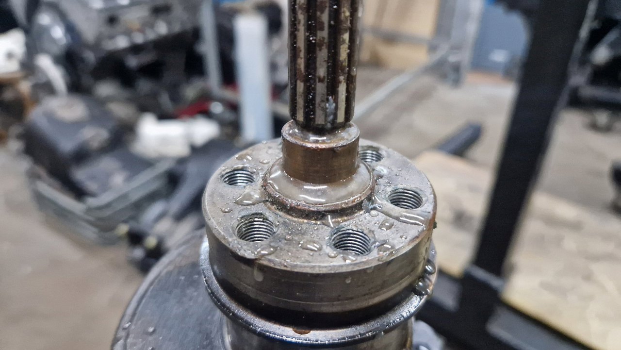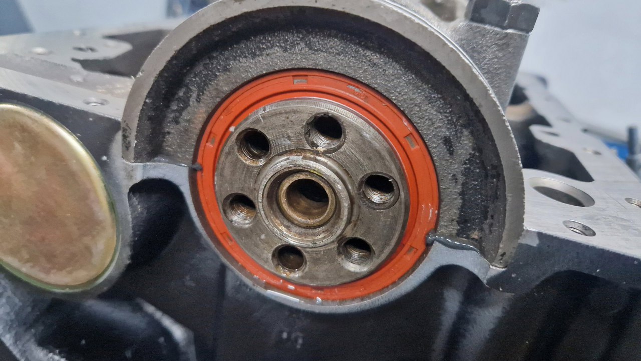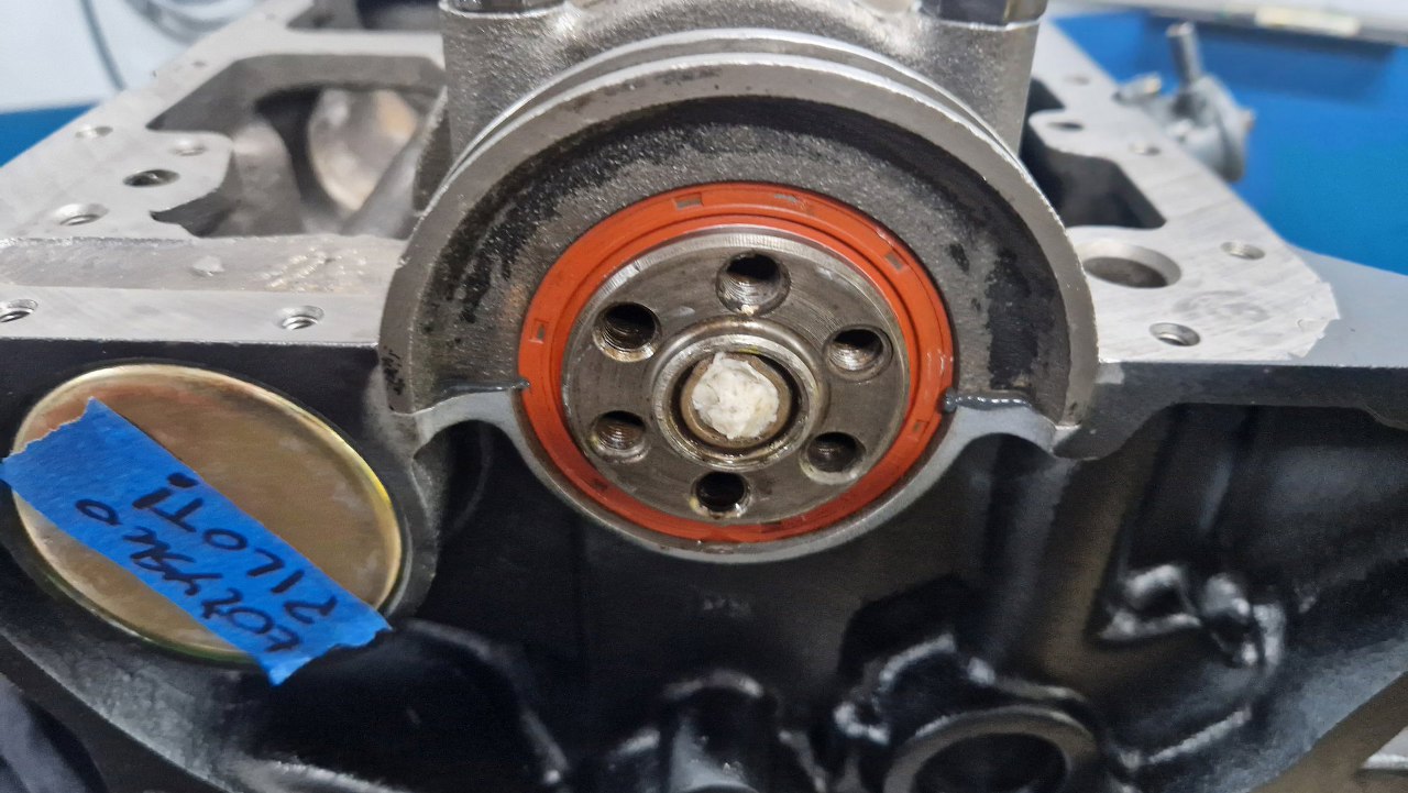 Na panewki położyłem wyczyszczony wał korbowy i posmarowałem jego czopy olejem. Na koniec wału trafił uszczelniacz.