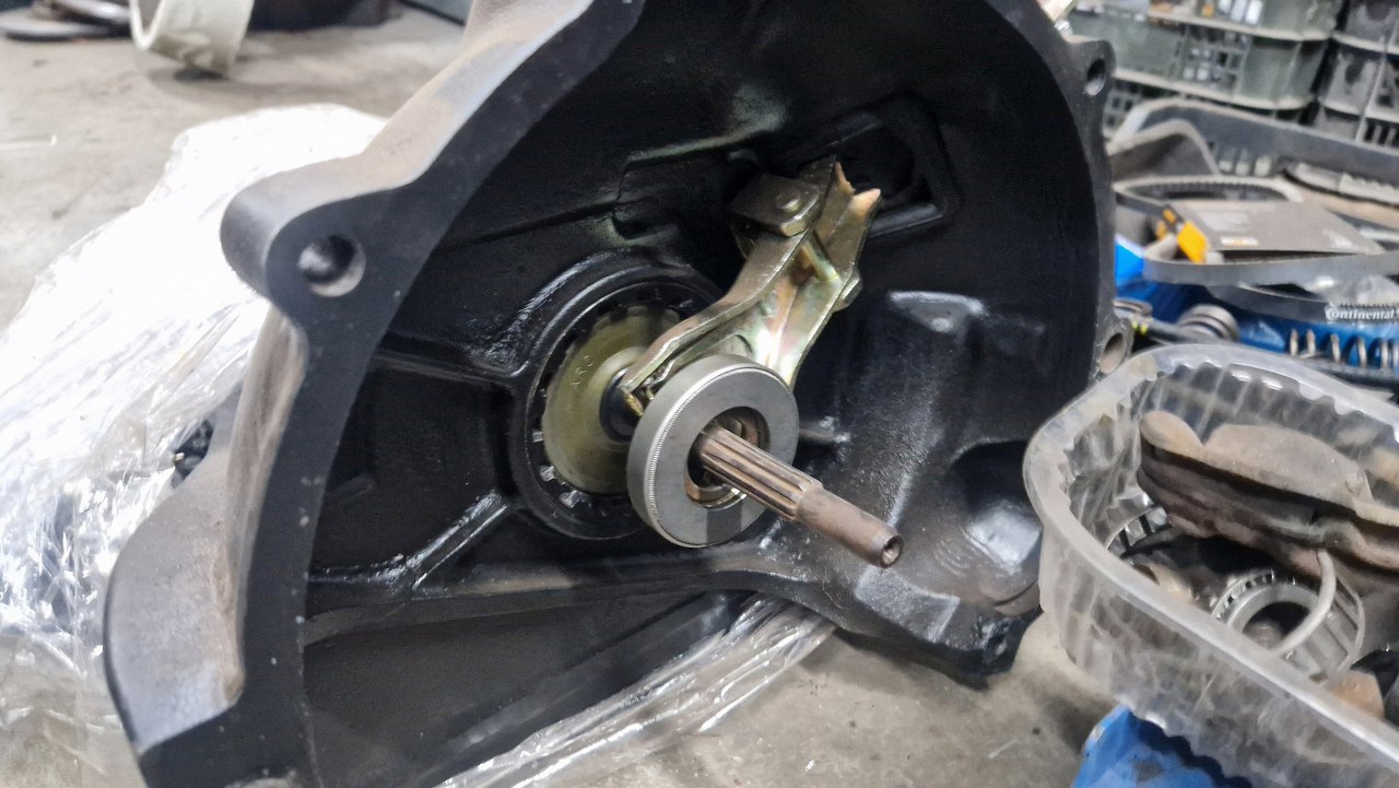 Przykręcając docisk sprzęgła użyłem wałka sprzęgłowego z zapasowej skrzyni jako przyrządu do centrowania tarczy.