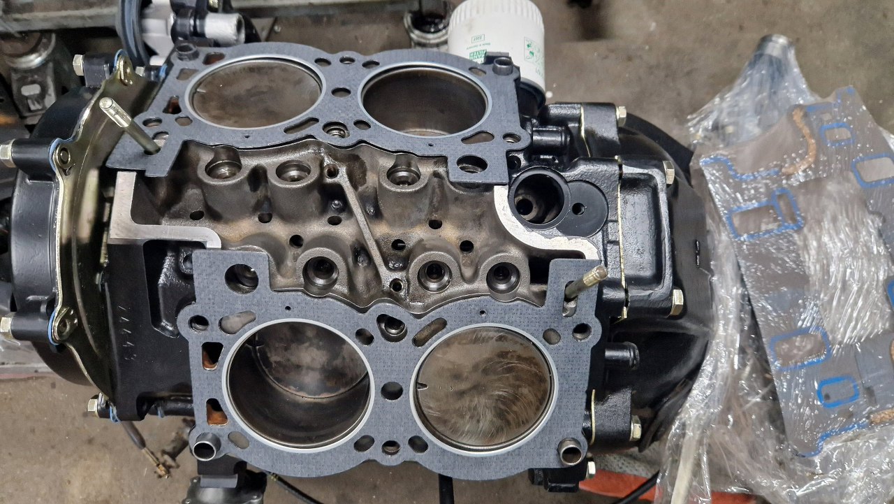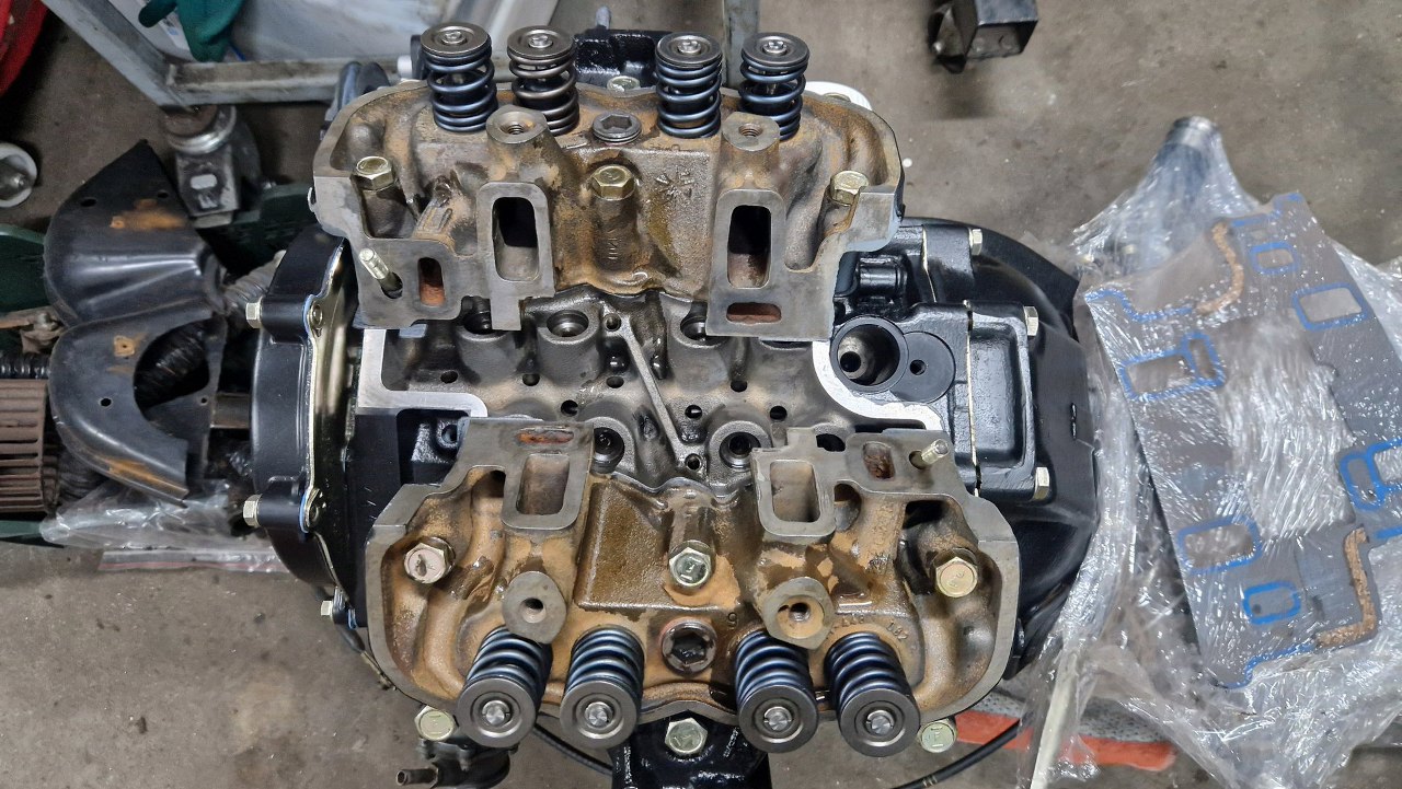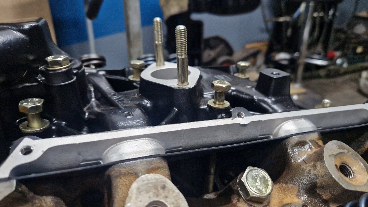 Śruby głowic ze starego silnika są krótsze. A akurat miałem tylko odnowione i ocynkowane dłuższe śruby.