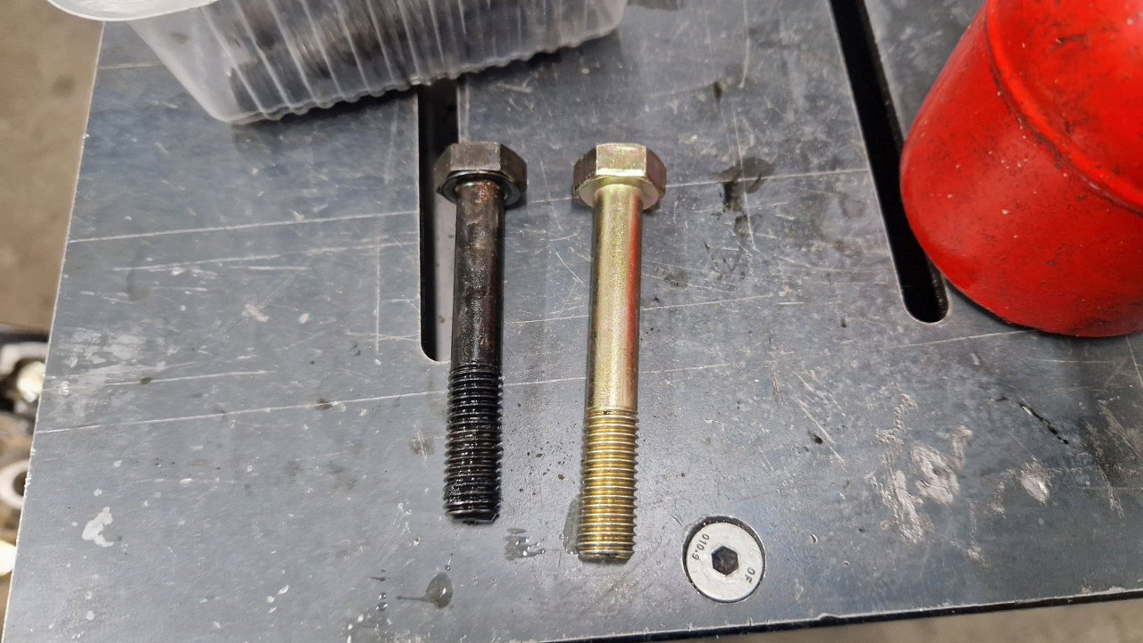 Znowu trafiłem na problem ze śrubami, tym razem kolektora. Ponieważ tu nie tylko głowice są inne, ale i kolektor (ale wynika to z rocznika, nie pojemności), to stare śruby przykręcane przy gaźniku są za krótkie i musiałem znaleźć właściwe w zapasach.