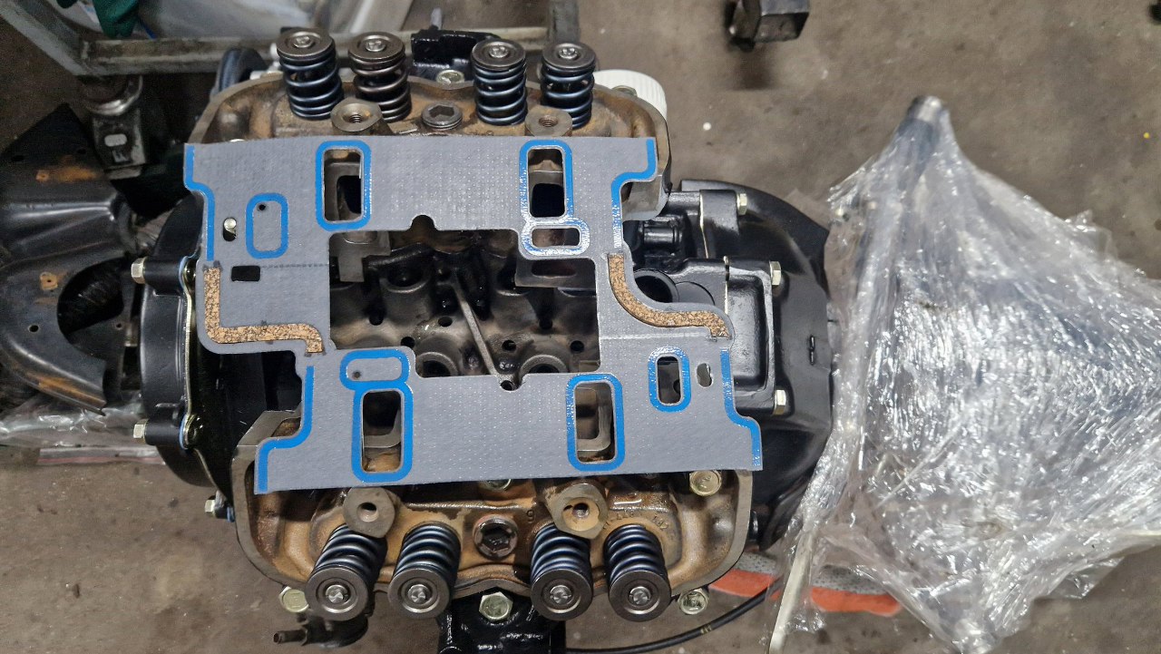I przygotowałem uszczelki głowic. Są dwie różne. I, co ciekawe - poprzedni silnik, 1.2 był starego typu i miał inne głowice i uszczelki pod głowice. Ten jest trochę nowszy i wymaga takich uszczelek.