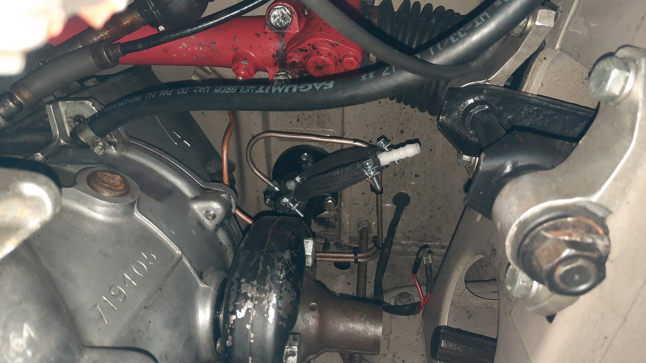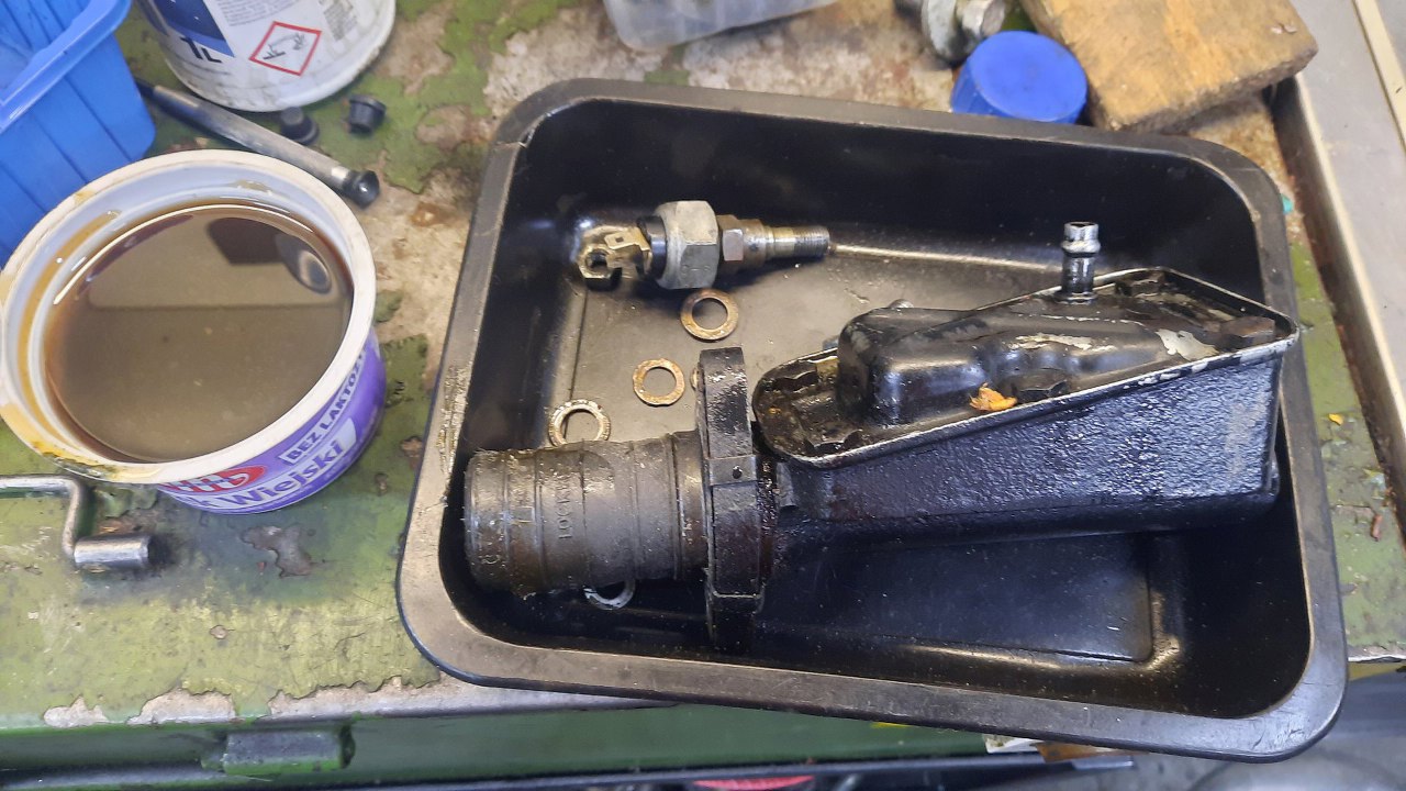 Pompa już zdjęta. Nie mam zdjęć po rozłożeniu, ale niestety standardowo okazała się przekorodowana w środku i nie nadaje się nawet do regeneracji. Niestety nowe pompy są niedostępne, a swap innej pompy, który ogarniam bezproblemowo w Sonettach, tu się nie udaje - tamte pompy są dłuższe, a w dwusuwie są ogromne przeguby przy skrzyni i się to nie mieści...
