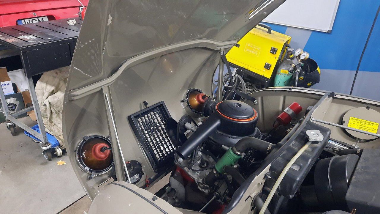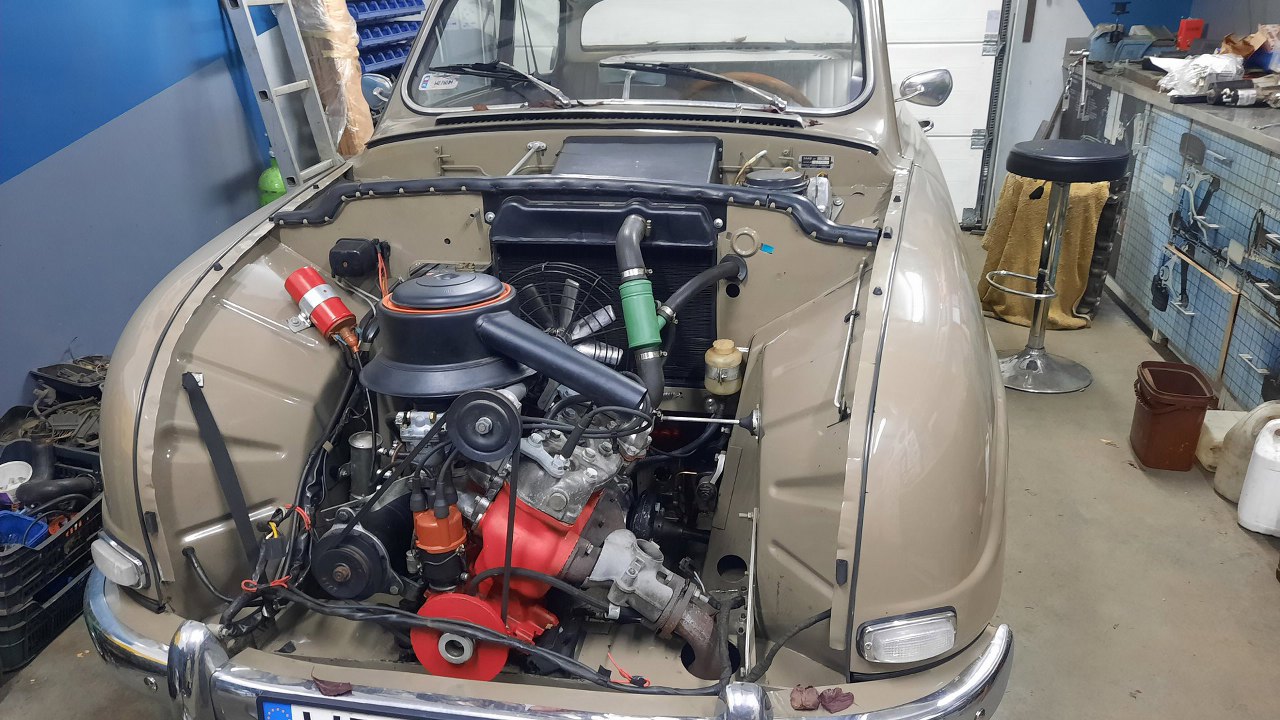 Na tym etapie trzeba to zacząć przykręcać do samochodu i przerobić rurki hamulcowe. Maska w Saabie 96 otwiera się do przodu, co w połączeniu z dość głęboko zakopaną pompą daje mocno ograniczony do niej dostęp.
