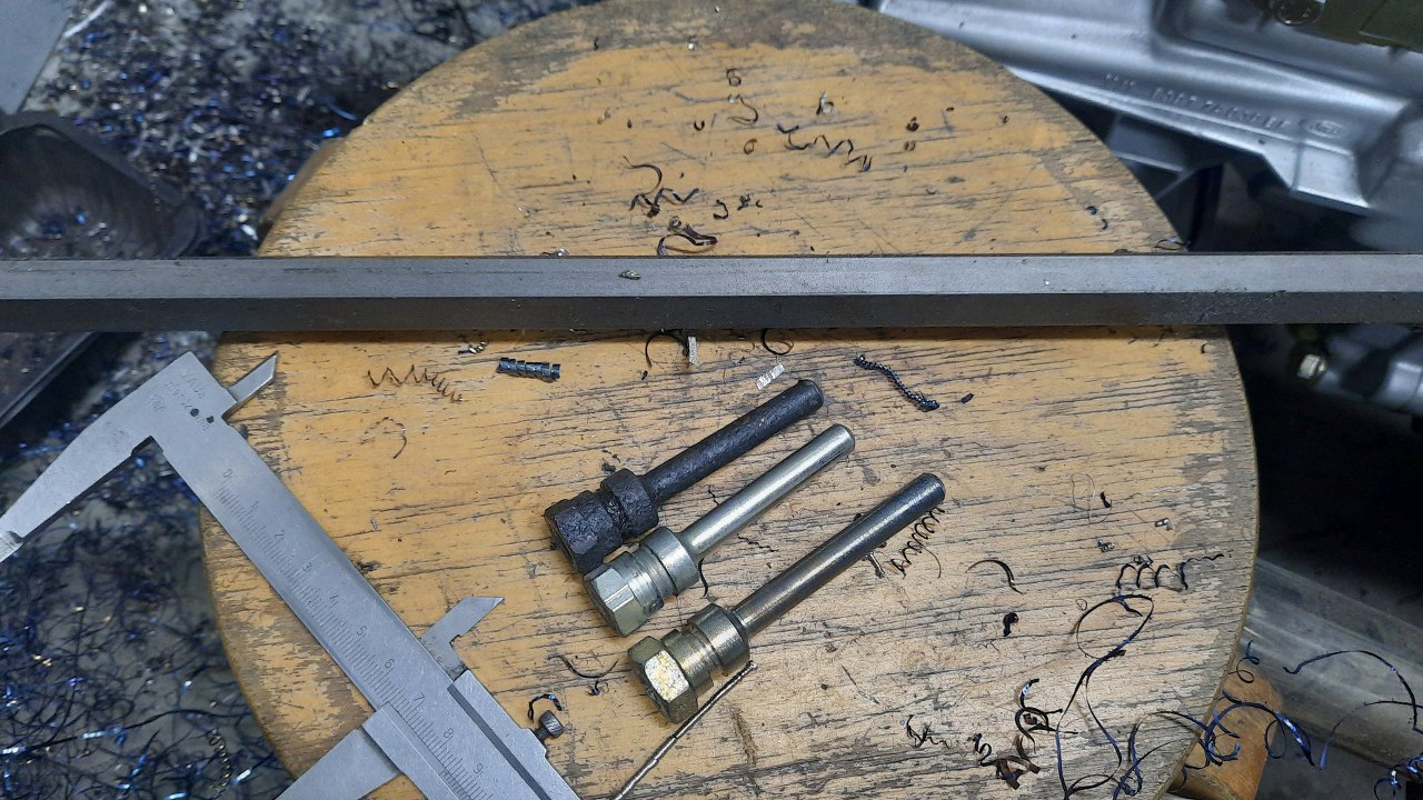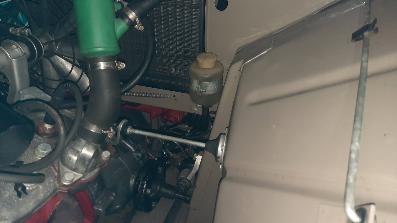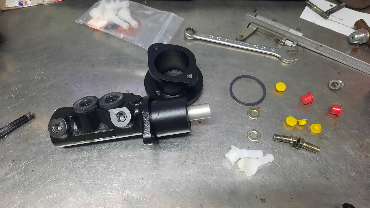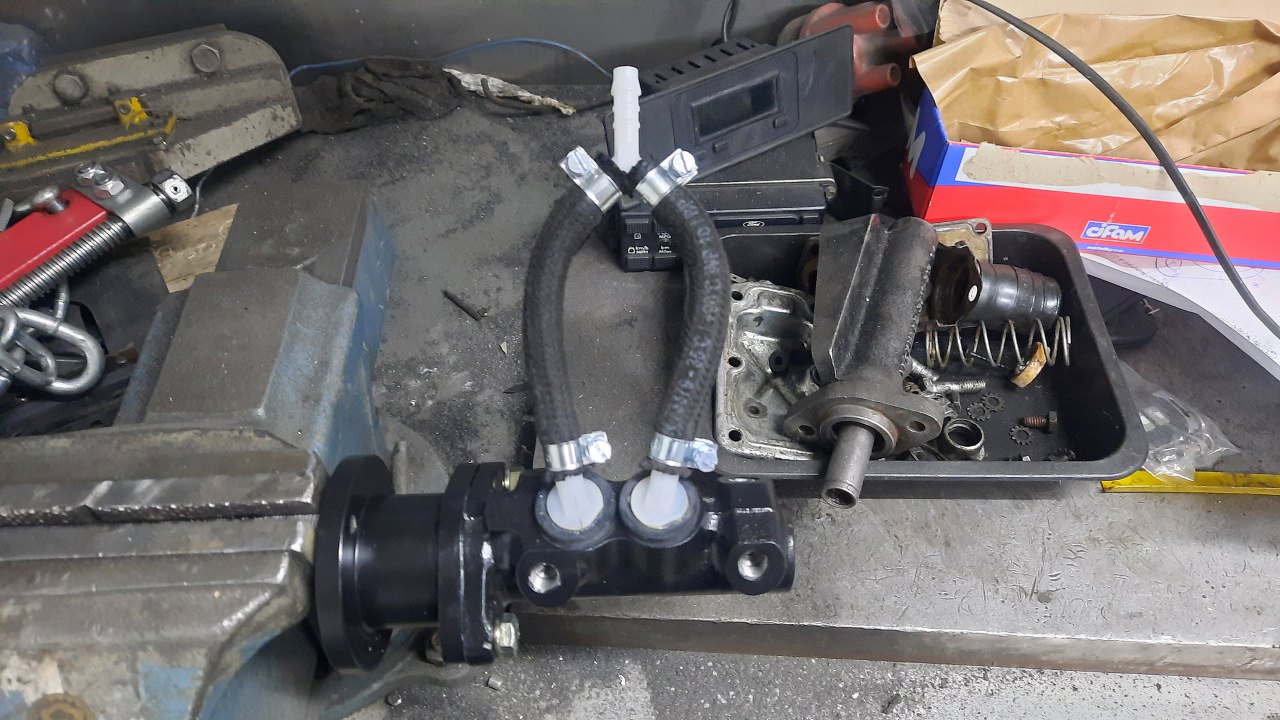 Zabrakło mi rurki, więc czekając na dostawę nowej, zająłem się innymi rzeczami. Popychacz pompy hamulcowej jest za krótki. Mam dorobione dłuższe, ale do innej pompy, też są za krótkie...