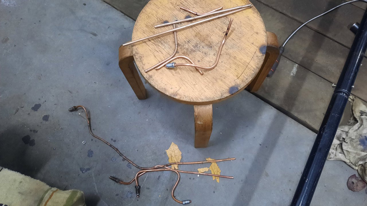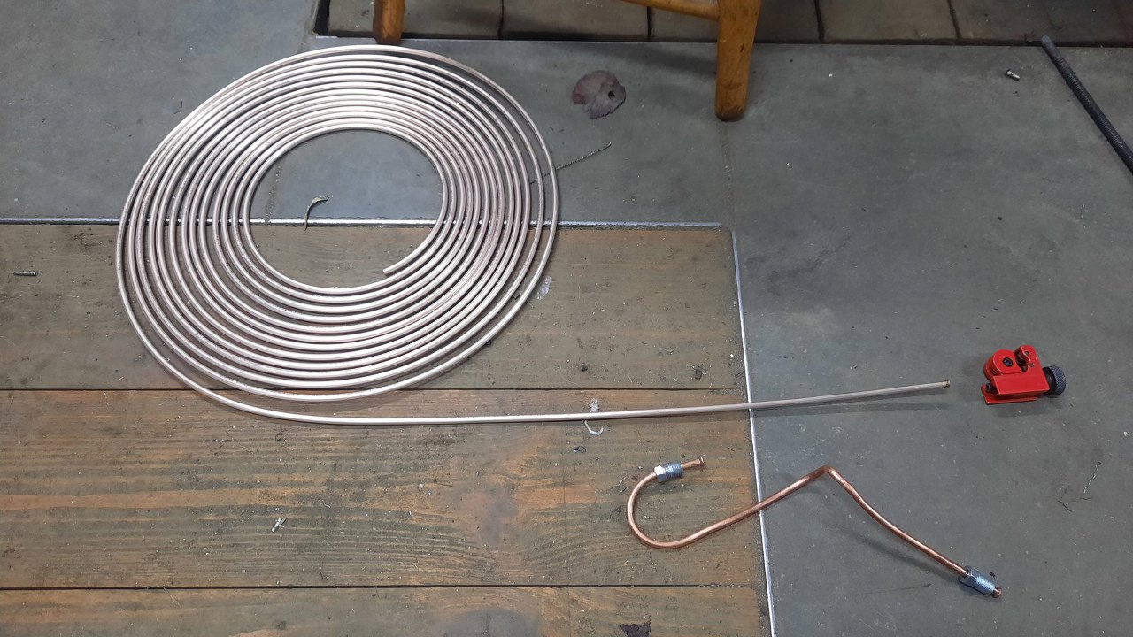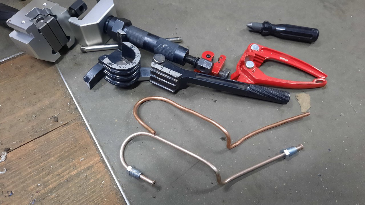 Wygiąłem też ze starej rurki hamulcowej wzór rurki do lewego przedniego koła.