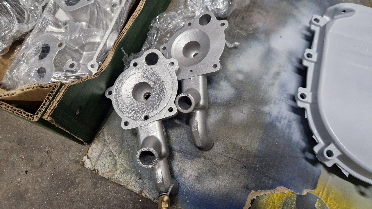 Części pojechały do zrobienia i powoli wracały. Na początku detale aluminiowe. Dostałem zapasową pokrywkę tylną pompy wody, i dobrze, bo oryginalna okazała się mocno pognita.