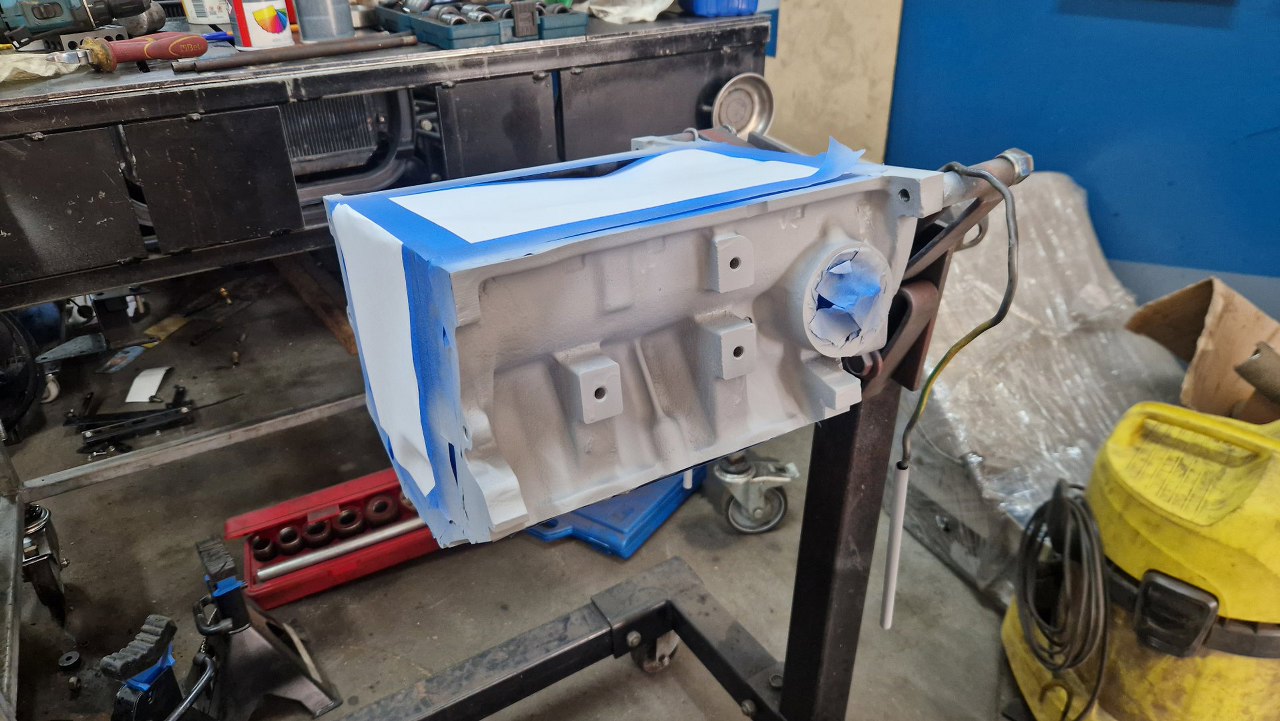 Potem dokładnie doczyściłem blok z zewnątrz i wewnątrz i przygotowałem go do malowania. Tylną część maluję jeszcze przed założeniem na stojak.