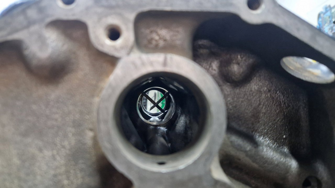 Zaczynam od tylnej. Jeden otwór to zasilanie wałka olejem z magistrali olejowej, drugi idzie w kierunku dołu aparatu zapłonowegi i smaruje jego oś obracającą się w bloku.