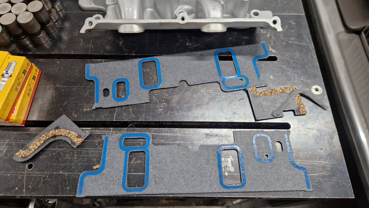 Przygotowałem kolektor dolotowy z uszczelką. Co ciekawe, mimo różnego obiegu chłodzenia we wczesnych silnikach, czyli różnych uszczelek głowic i kolektora dolotowego, uszczelka kolektora jest bez zmian.