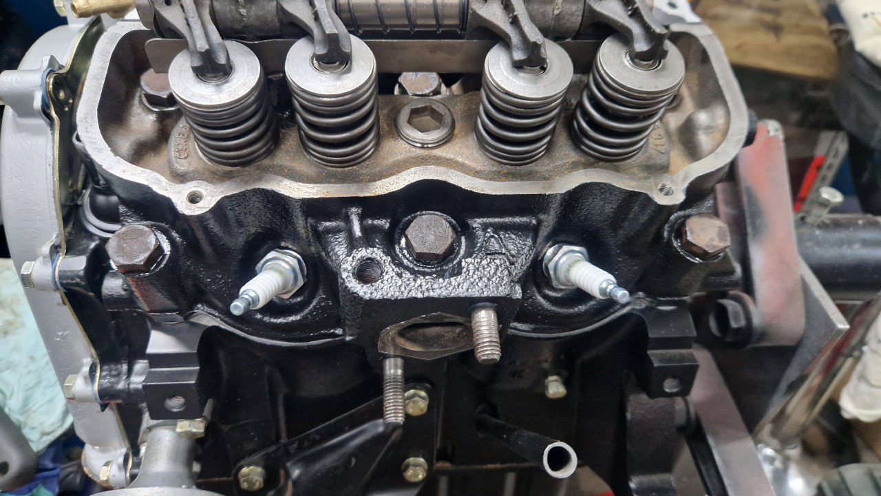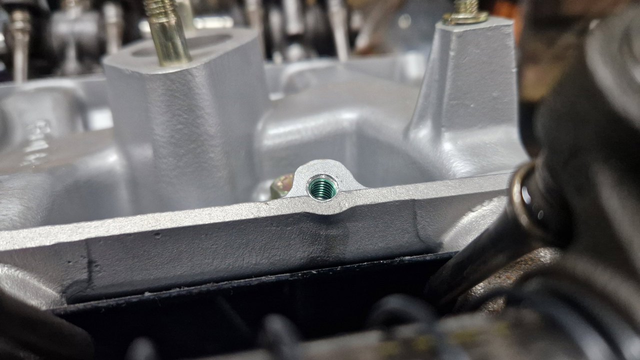 Dość typowo zapomniałem wcześniej sprawdzić gwinty pod śruby pokryw zaworów, więc musiałem wstawiać helicoile w silniku wiszącym do góry nogami, żeby nie ryzykować dostania się do środka opiłków :).