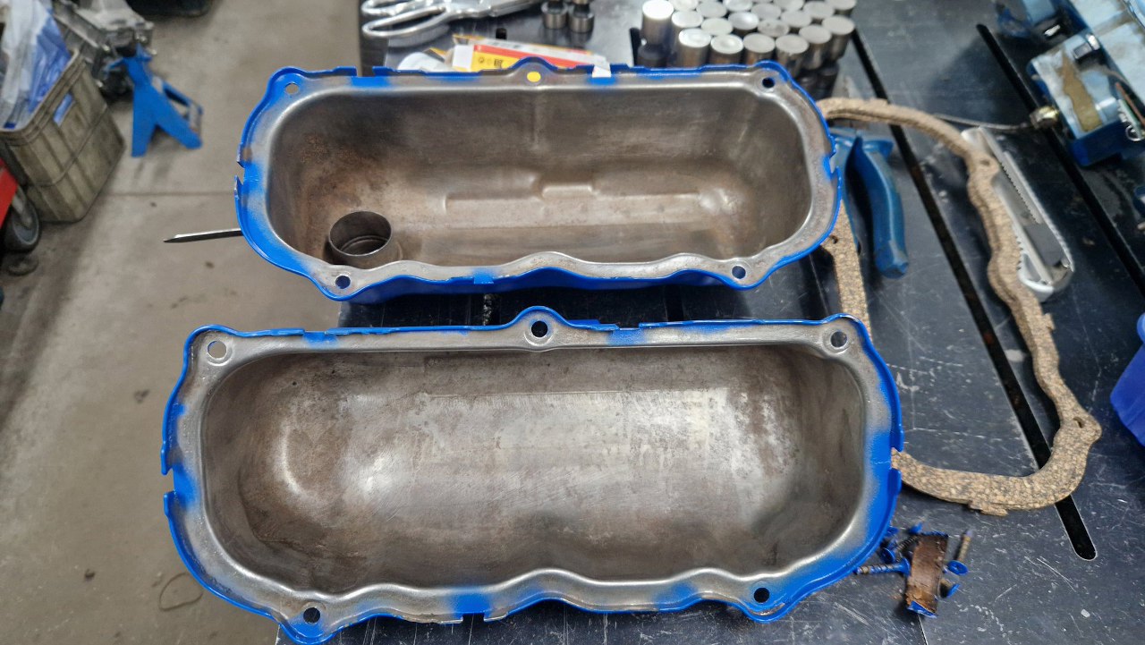 Rozpakowałem pokrywy z zabezpieczeń do malowania proszkowego i dokładnie wyczyściłem wszystko w środku. Przed montażem smaruję je jeszcze olejem, żeby nie zaszły rdzą jeśli chwilę silnik postoi przed uruchomieniem.