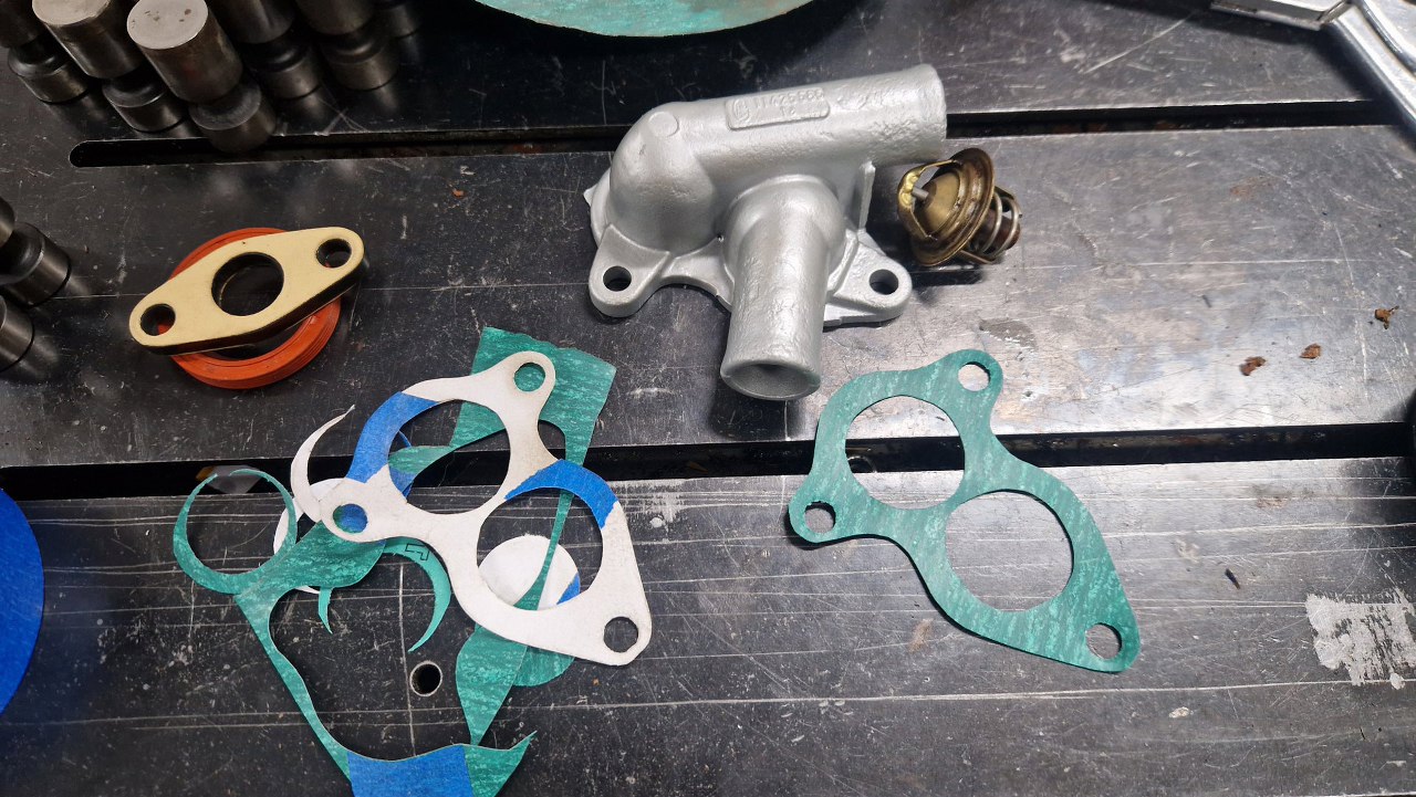 Dorobiłem też uszczelkę pokrywy termostatu.
