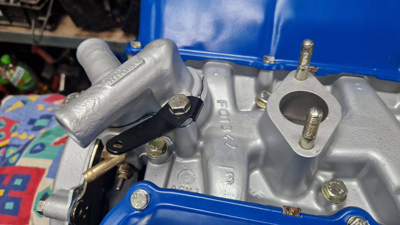 Przykręciłem pokrywę. Pod jedną ze śrub jest blaszka trzymająca sprężynę powrotną cięgna gazu.