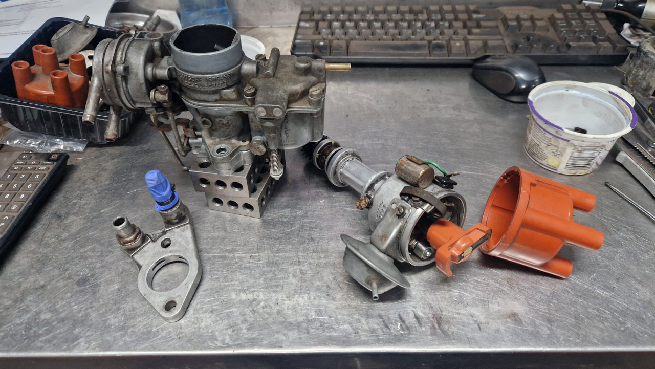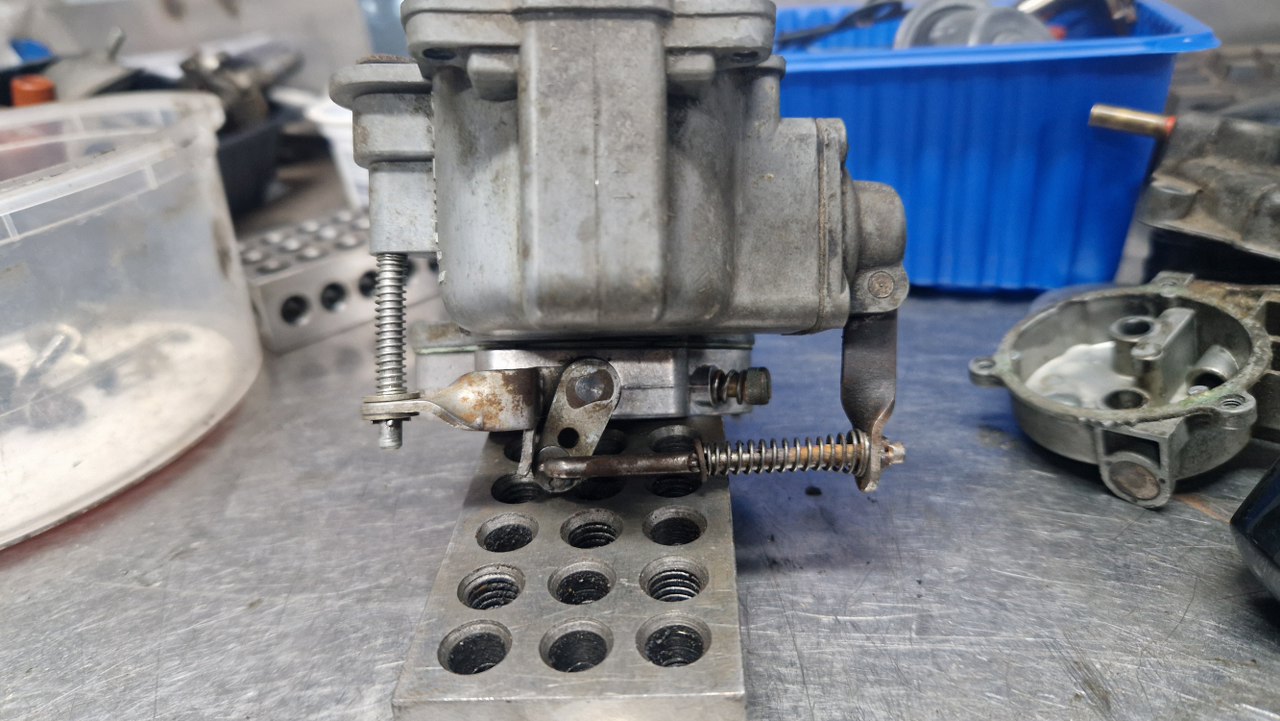 Kolejny gaźnik do zrobienia bez samochodu. Tym razem z aparatem zapłonowym, co jest o tyle dobre, że zapłon ma bardzo duży wpływ na pracę silnika i regulację gaźnika zawsze warto zacząć od regulacji zaworów i zapłonu, a dopiero potem szukać problemów w gaźniku.
