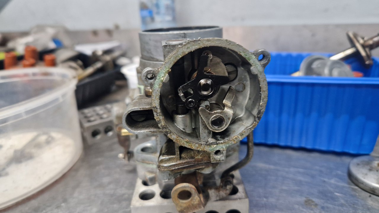 W końcu odkręciłem płytkę przepustnicy i wyjąłem zwężkę z korpusu gaźnika.