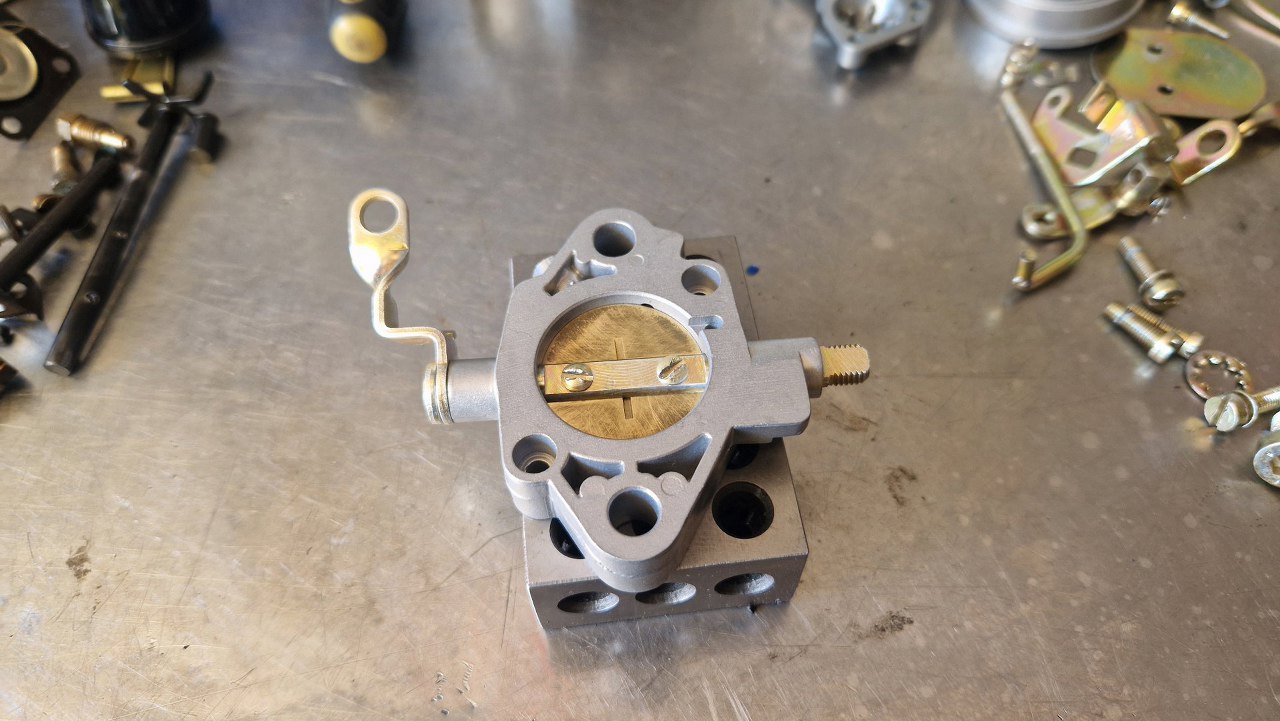 Chwilowo nie mam pod ręką zwężki, więc na razie ją pomijam. Wstępnie przykręciłem płytkę przepustnicy do korpusu gaźnika.