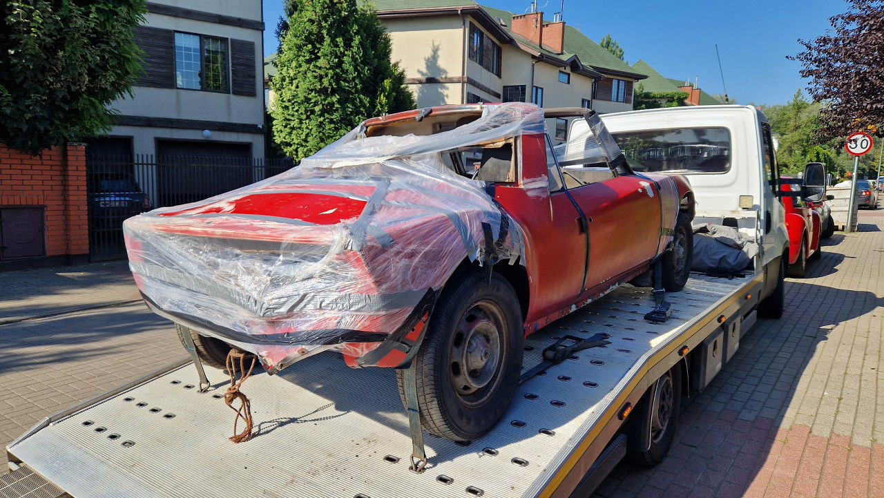 Sprzedający dość ładnie zabezpieczył samochód do transportu.