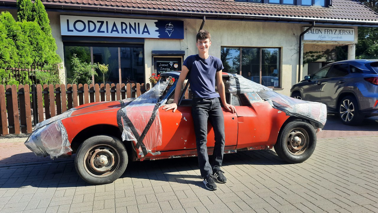 No i zdjęcie ogólne, motywacyjne, bo szybko to nie pojeździ. Zawsze powtarzam, że należy kupić samochód w jak najlepszym stanie, najlepiej jeżdżący. Co oczywiście nie miało sensu w tym przypadku - z budżetem chłopaka w tym wieku kupienie czegokolwiek starego graniczy z cudem...