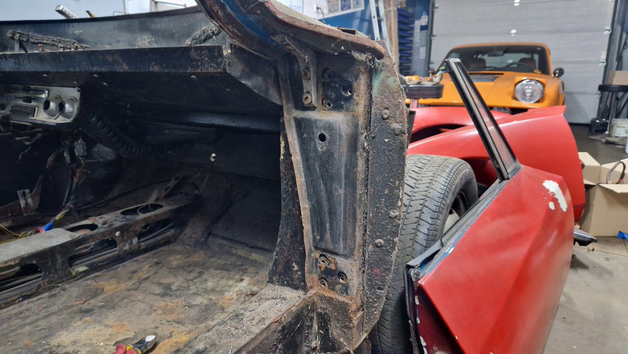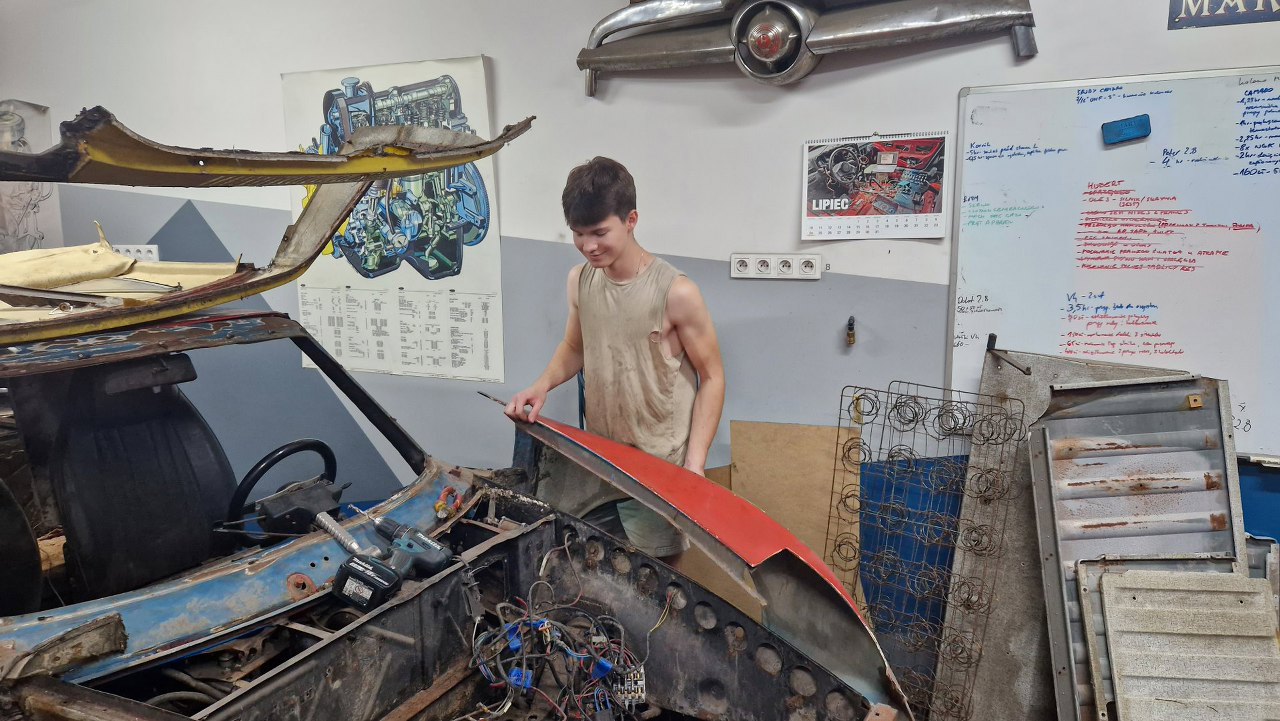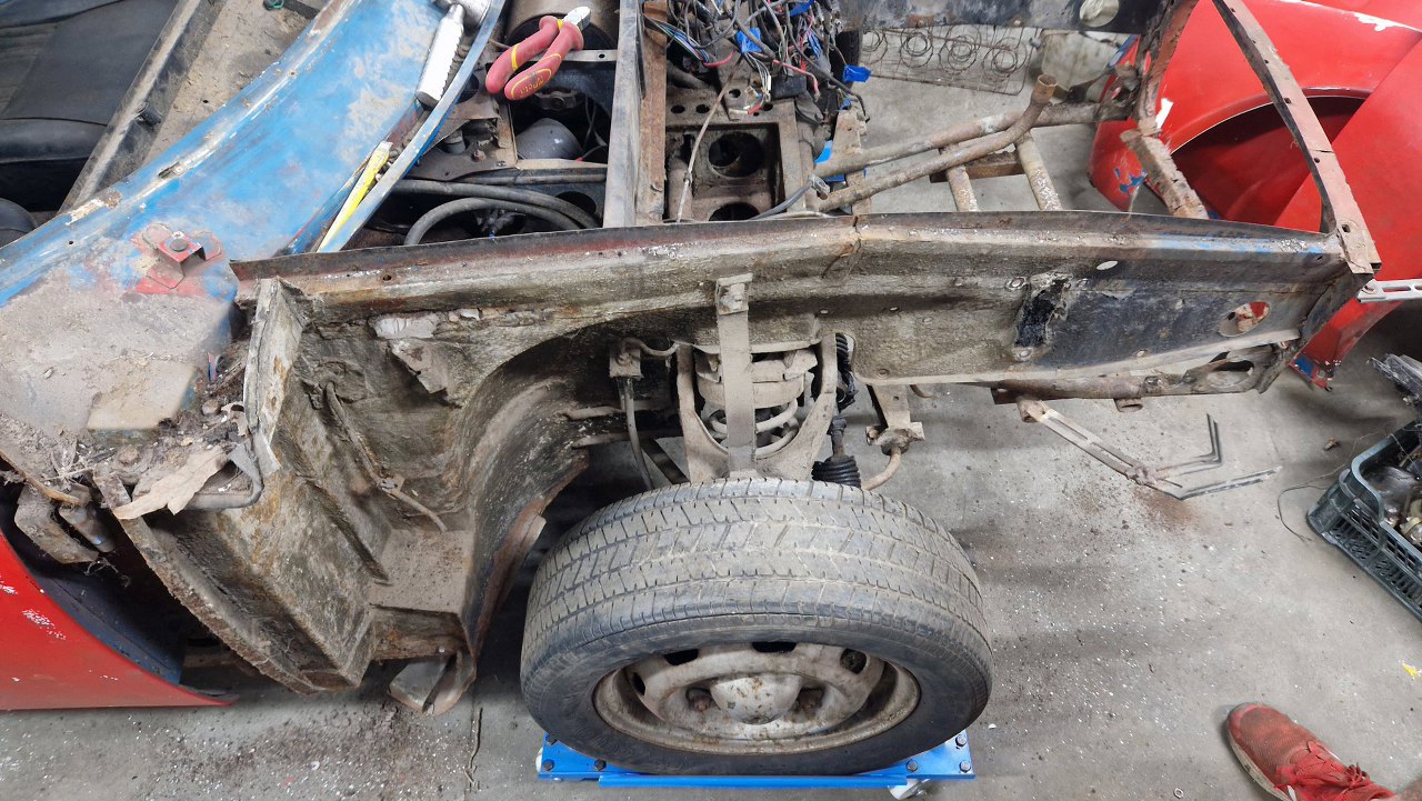 Drugi błotnik też został zdjęty. Widać też jeszcze nie schowany żółty dach po lewej.